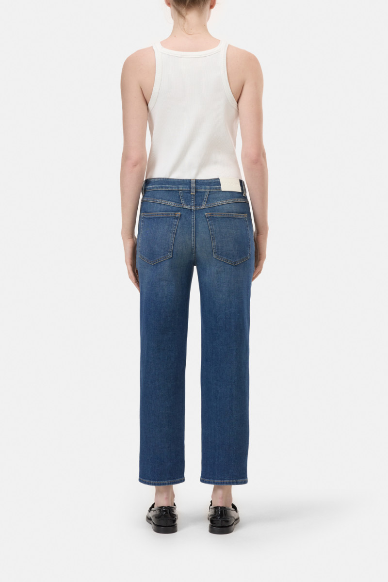Die Mira-X Jeans präsentiert sich mit einer geraden Passform, mittlerer Leibhöhe und verkürzter Beinlänge. Gefertigt aus weichem Candiani-Denim (10 oz.) aus regenerativer Baumwolle mit 20% Elastizität. Zu den Designmerkmalen gehört eine neue Interpretation der ikonischen X-Pockets. 100% made in Italy.