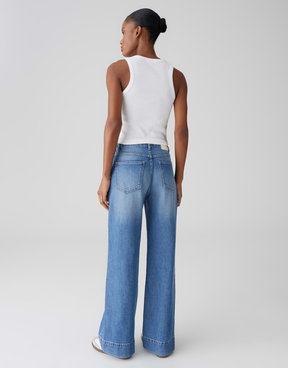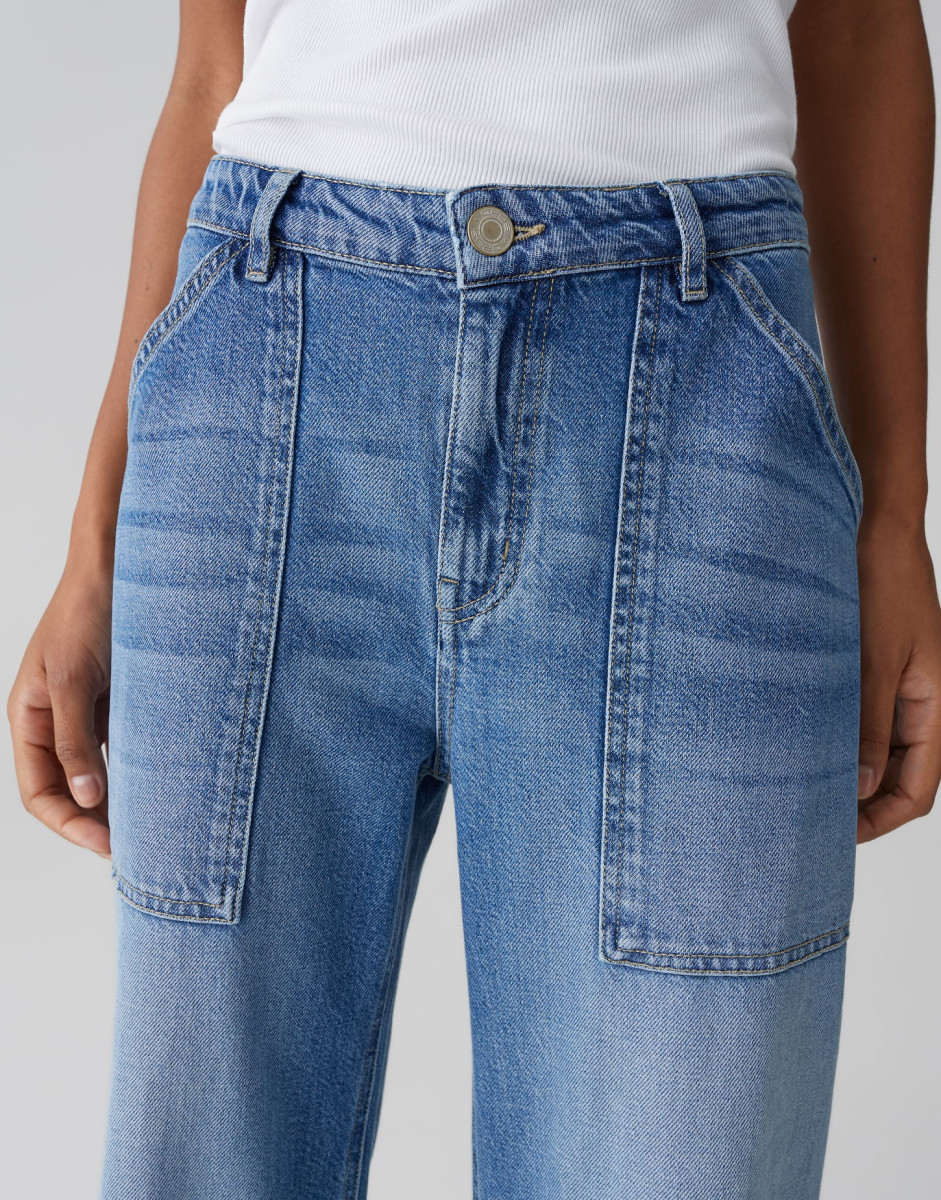 Weich und modern präsentiert sich die Wide Leg Jeans als wandelbares Statement Piece, neu interpretiert durch lang geschnittene, eckige Cargotaschen und eine authentische Denimwaschung. Ob mit lässigem Strick oder Overshirt gestylt, wird sie zum vielseitigen Favoriten für angesagte City Outfits.
