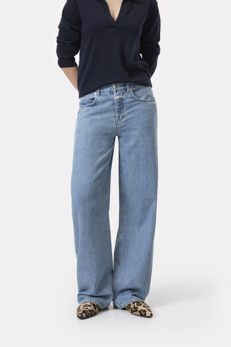 Die Nikka Wide-Leg Jeans vereint Komfort und Stil mit mittlerer Leibhöhe und langem Bein. Gefertigt aus weichem Denim (8.5 oz.) mit elegantem Fall und gleichmäßiger Ausbleichung. Ausgestattet mit klassischem Five Pocket Design, Gürtelschlaufen und Knopf-Reißverschluss. In Italien gefertigt aus Bio- und recycelter Baumwolle.