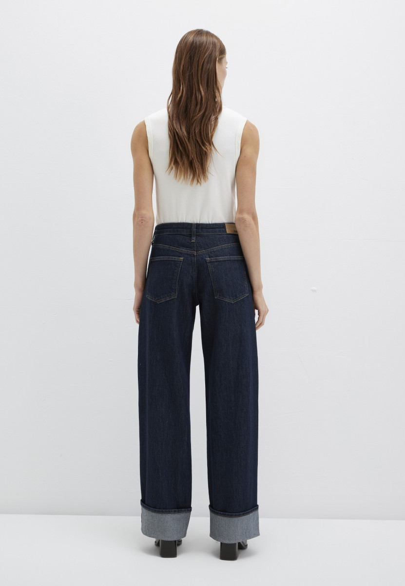 Hoher Bund | Five-Pocket-Style | Reißverschluss | Mittlere Denimqualität mit mittlerem Stretchanteil | Weiter und gerader Beinverlauf mit Umschlag | Gürtelschlaufen