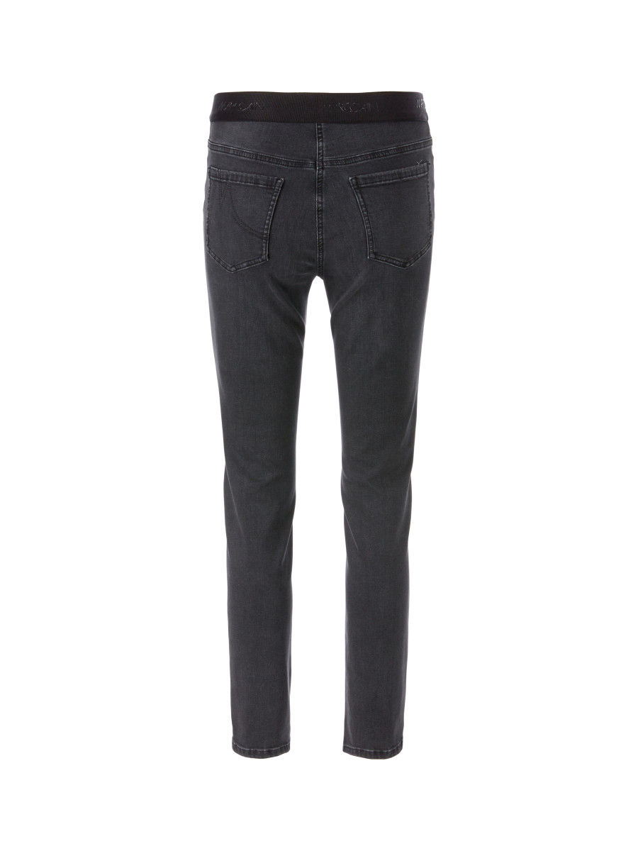 „Rethink Together“ Jeans SIENA|Das Modell SIENA präsentiert sich in 5-Pocket-Form und ist aus Biobaumwolle mit Elasthananteil gefertigt für besten Tragekomfort. Der flexible Gummibund zeigt sich mit Logoprägung. Das gewaschene Schlupfmodell mit lässiger Optik trägt das Nachhaltigkeitslabel „Rethink Together“.
