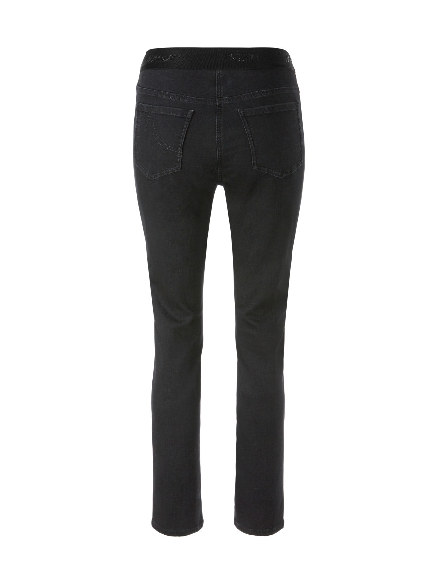 „Rethink Together“ Jeans SIENA|Das Modell SIENA präsentiert sich in 5-Pocket-Form und ist aus Biobaumwolle mit Elasthananteil gefertigt für besten Tragekomfort. Der flexible Gummibund zeigt sich mit Logoprägung. Das Schlupfmodell trägt das Nachhaltigkeitslabel „Rethink Together“ und ist gewaschen, wodurch sich ein satter Farbton ergibt.