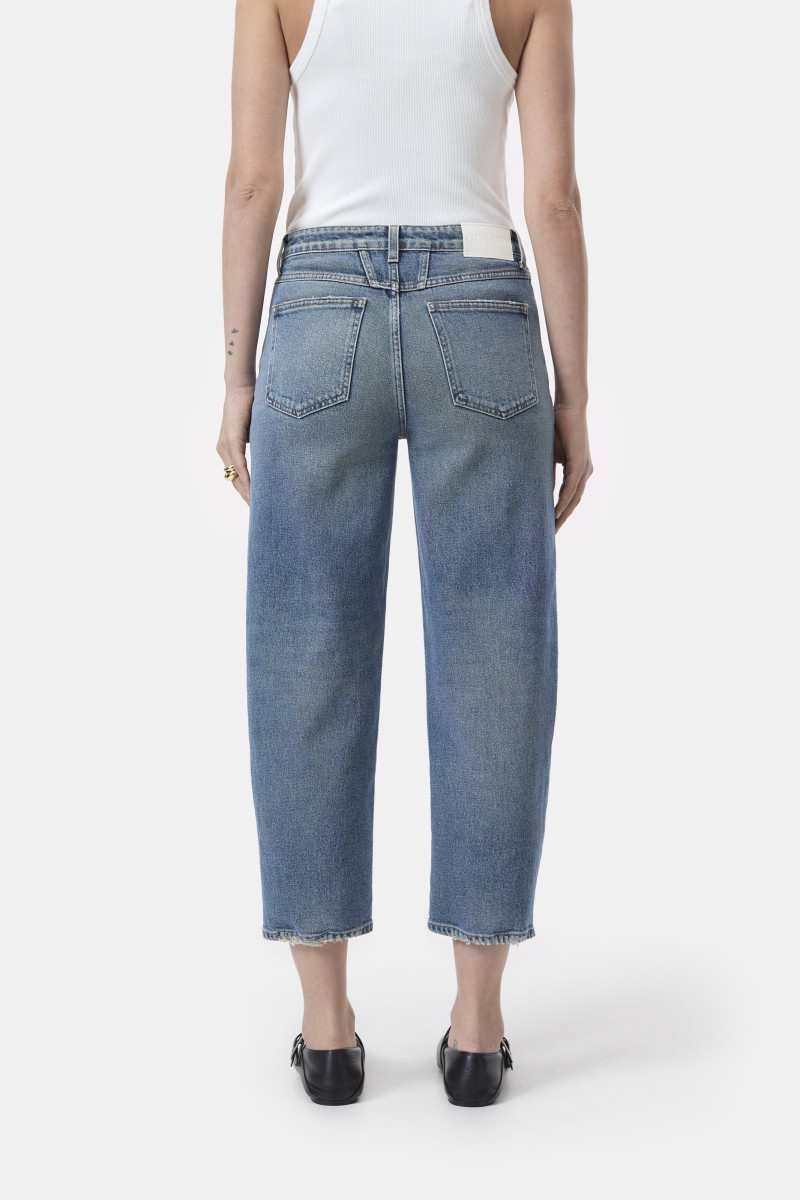 Die Stover-X Jeans überzeugt mit relaxter Passform, mittlerer Leibhöhe und verkürzter Länge. Der Comfort Stretch Denim mit Twill-Gewebe zeigt dezente Vintage-Effekte. X-Pockets, Knopf- und Reißverschluss sowie Gürtelschlaufen vervollständigen das Design. Made in Italy mit recycelter Baumwolle.