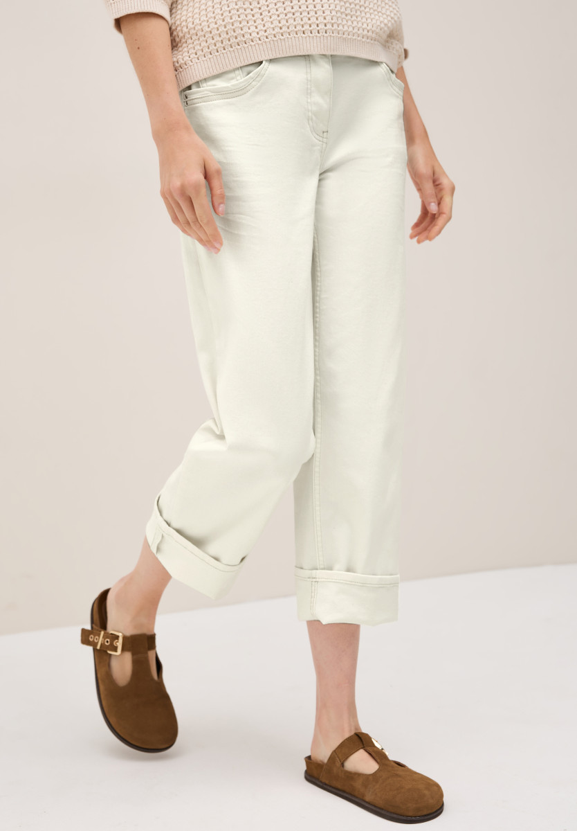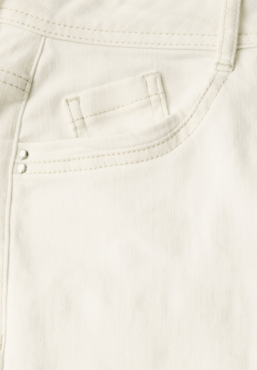 In frischem Ecru bringt diese Straight Leg Jeans im Style Neele von CECIL für Damen sommerliche Leichtigkeit in deine Garderobe. Der Loose Fit mit High Waist sorgt für einen entspannten Look. Ideal für legere Outfits mit femininer Note. Jeanshose im Loose Fit High Waist und Straight Legs Ecru 5-Pocket-Style Baumwollmix mit Stretchanteil Material: 81% Baumwolle, 17% Polyester, 2% Elasthan