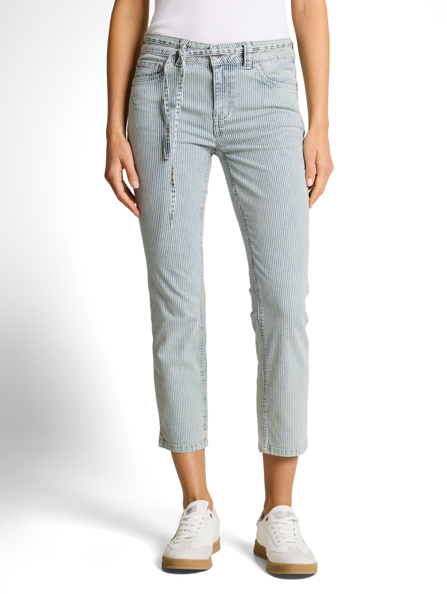 Diese gestreifte Jeanshose überzeugt durch ihren Bindegürtel, mit dem sich die Taille individuell anpassen lässt. Im Five-Pocket-Style bietet sie seitliche Eingrifftaschen vorne sowie aufgesetzte Taschen hinten. Das Modell lässt sich vielseitig kombinieren und verleiht jedem Outfit eine moderne Note.Lief.-Art-Nr: 1051848