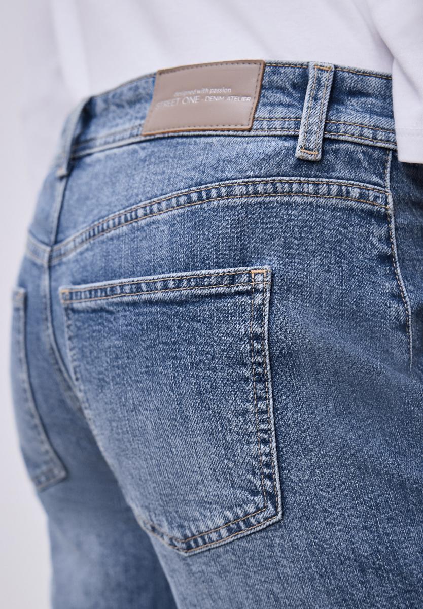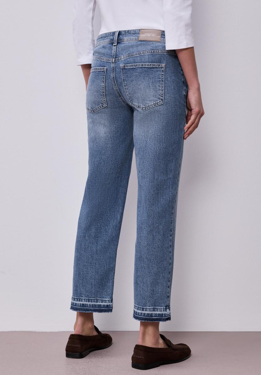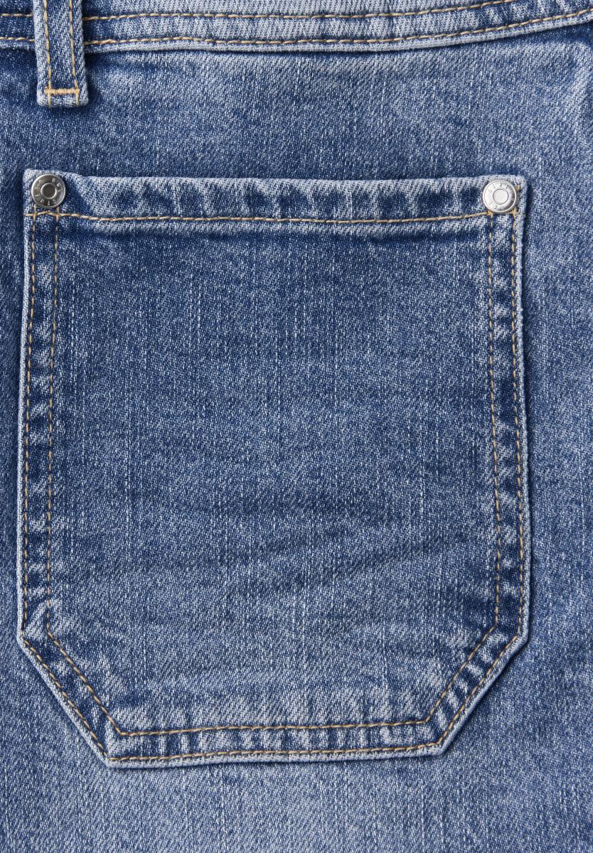 Diese Jeans mit Saumdetail von Street One zeigt sich im Style Amalia in klassischer blauer Waschung und überzeugt mit zeitloser Optik. Der Casual Fit mit geraden Beinen sorgt für einen bequemen Sitz im Alltag, während aufgesetzte Taschen modische Akzente setzen. Der Denim besteht aus 98% Baumwolle und 2% Elasthan und bietet dank Stretch angenehmen Tragekomfort.
