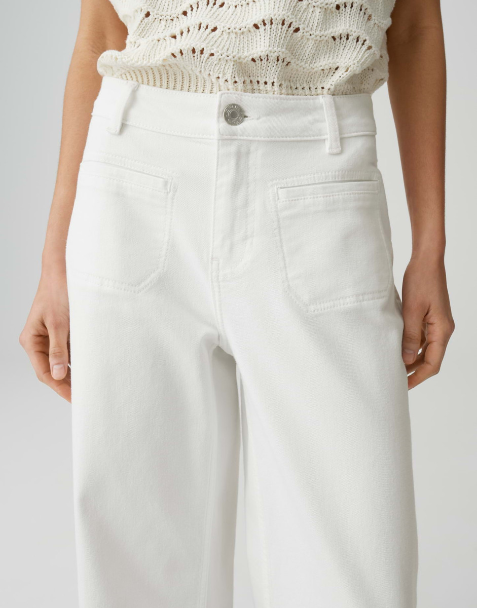 Weiße Jeans gehören zu den unverzichtbaren Basics im Kleiderschrank und verleihen jedem Look eine klare moderne Frische. Elastischer Denim mit angenehmem Komfort und Retro inspirierten Taschen macht sie zum vielseitigen Allrounder, der sich von casual mit Streifenshirt bis hin zu angezogen mit Bluse und Blazer inszenieren lässt.