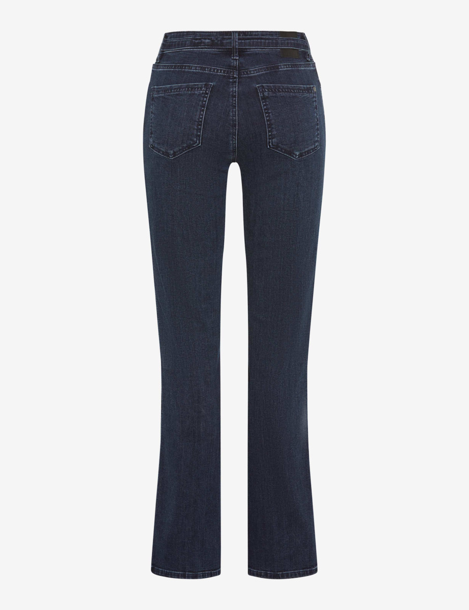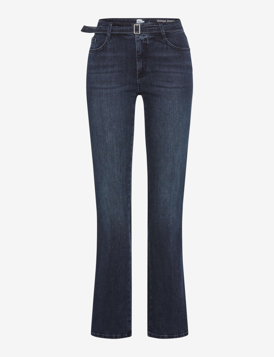 Für einen lässigen und zugleich stilvollen Auftritt ist die Five-Pocket-Jeans im STYLE MARY eine ausgezeichnete Wahl. Die ausgestellte Form in Regular Bootcut mit normaler Leibhöhe zaubert eine feminine Silhouette, die sowohl modern als auch zeitlos wirkt. Typische Details wie aufgesetzte Gesäßtaschen und Einschubtaschen ergänzen die moderne Five-Pocket-Form, die über den schmalen Bindegürtel und dem klassischen Bügelbruch einen femininen Touch erhält. Der trendige Charakter der Damenjeans kommt aber vor allem über das Material. Der Vintage Stretch Denim mit Used-Effekten inszeniert einen lässigen und authentischen Jeans-Look. Gefertigt aus einem hochwertigen Baumwollmix, bietet die Damenhose ein angenehmes Tragegefühl und zugleich eine hervorragende Strapazierfähigkeit. Die Elastizität des Denims garantiert Bewegungsfreiheit und passt sich dem Körper perfekt an. Mit dieser Five-Pocket-Jeans lässt sich ein modisches Statement setzen, das Stil und Komfort mühelos vereint.