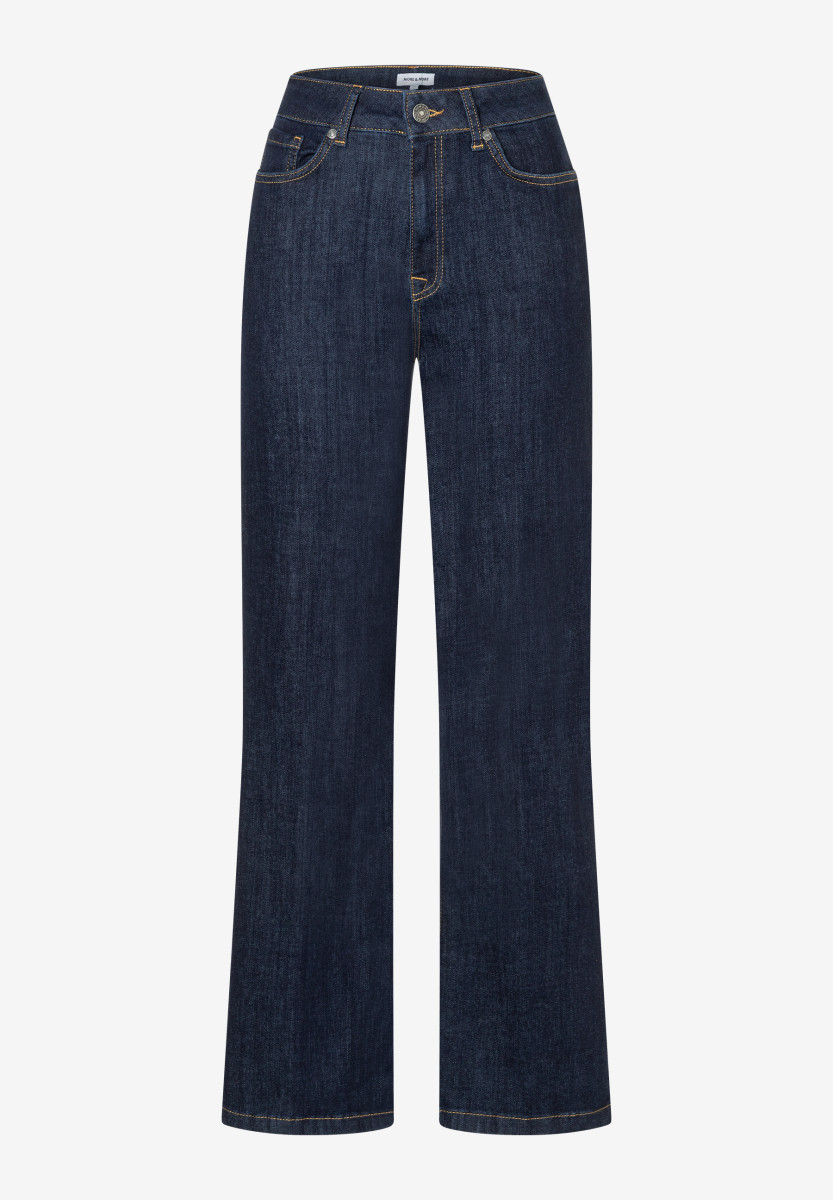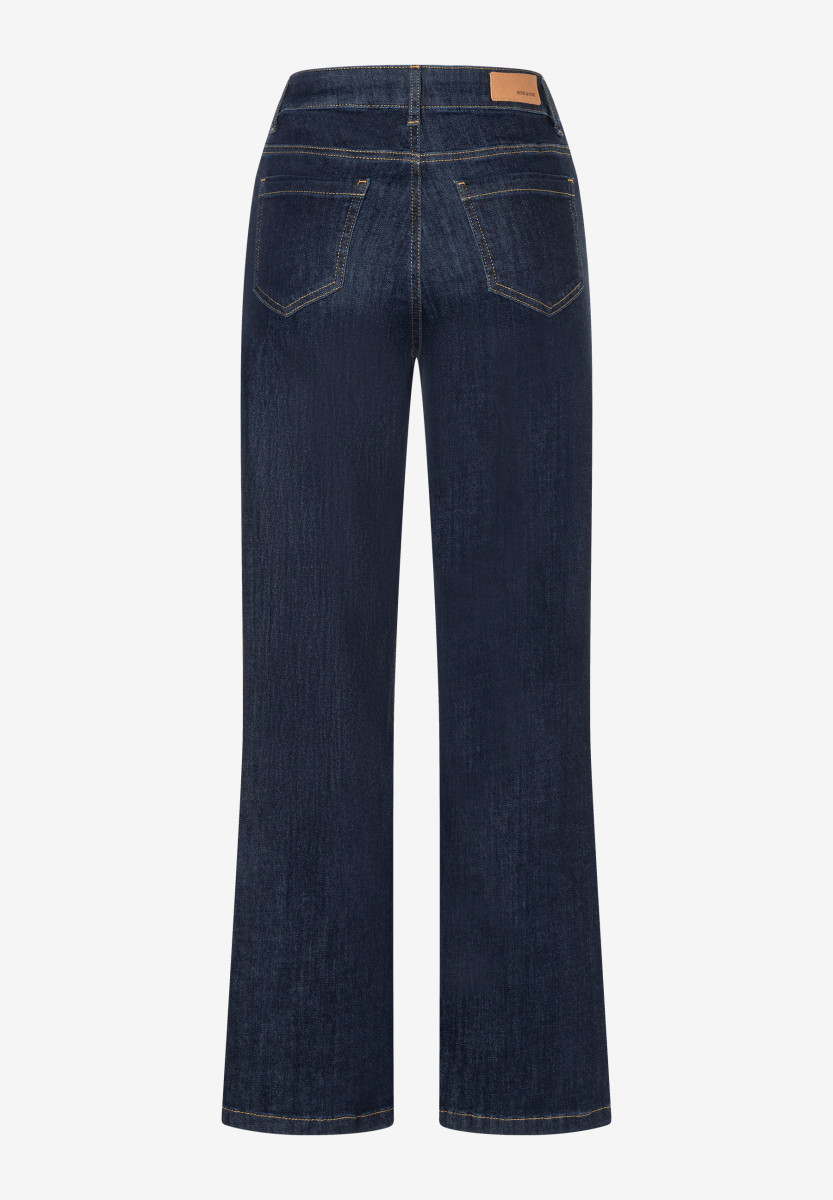 Die cleane, dunkelblaue Jeans von MORE & MORE mit weitem Bein und Bügelfalte ist ein toller Allrounder, der sich vielseitig kombinieren lässt und für einen sportiven Look sorgt.