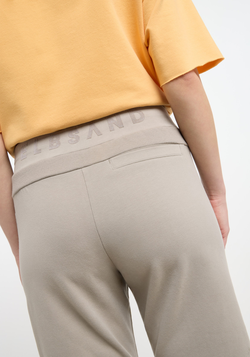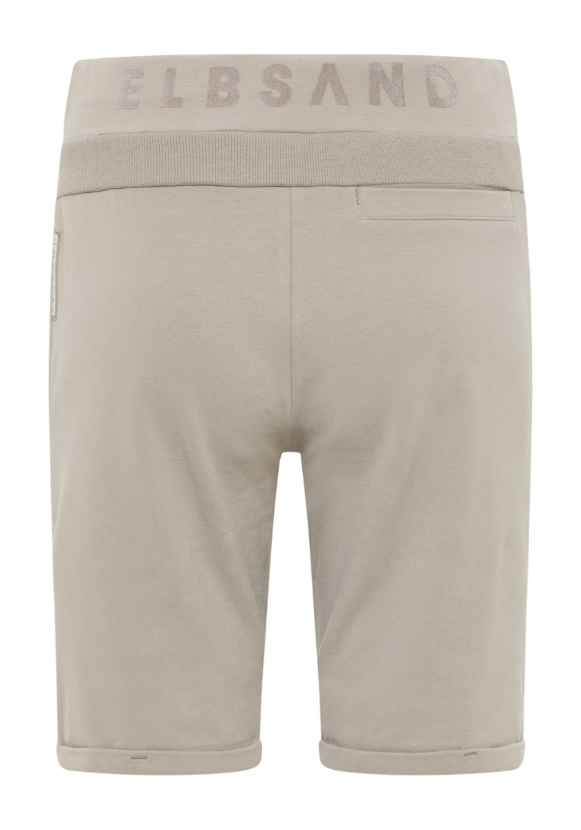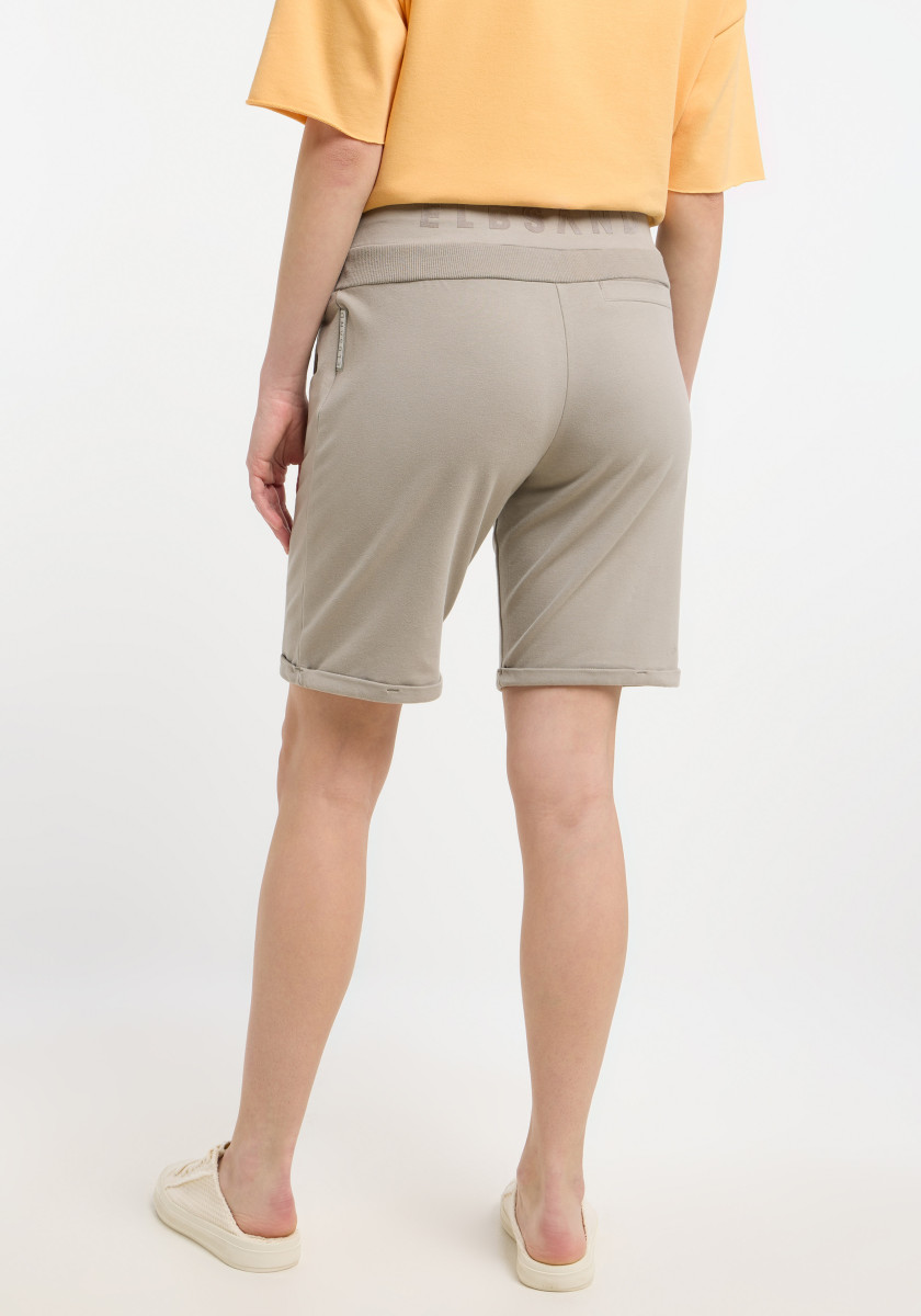 Locker geschnittene Bermudahose | Weiche, elastische Sweatqualität, kuschelig angeraut | Rippeinsatz als hintere Passe, Eingriffstaschen vorne | Weicher Flockprint auf dem Bund