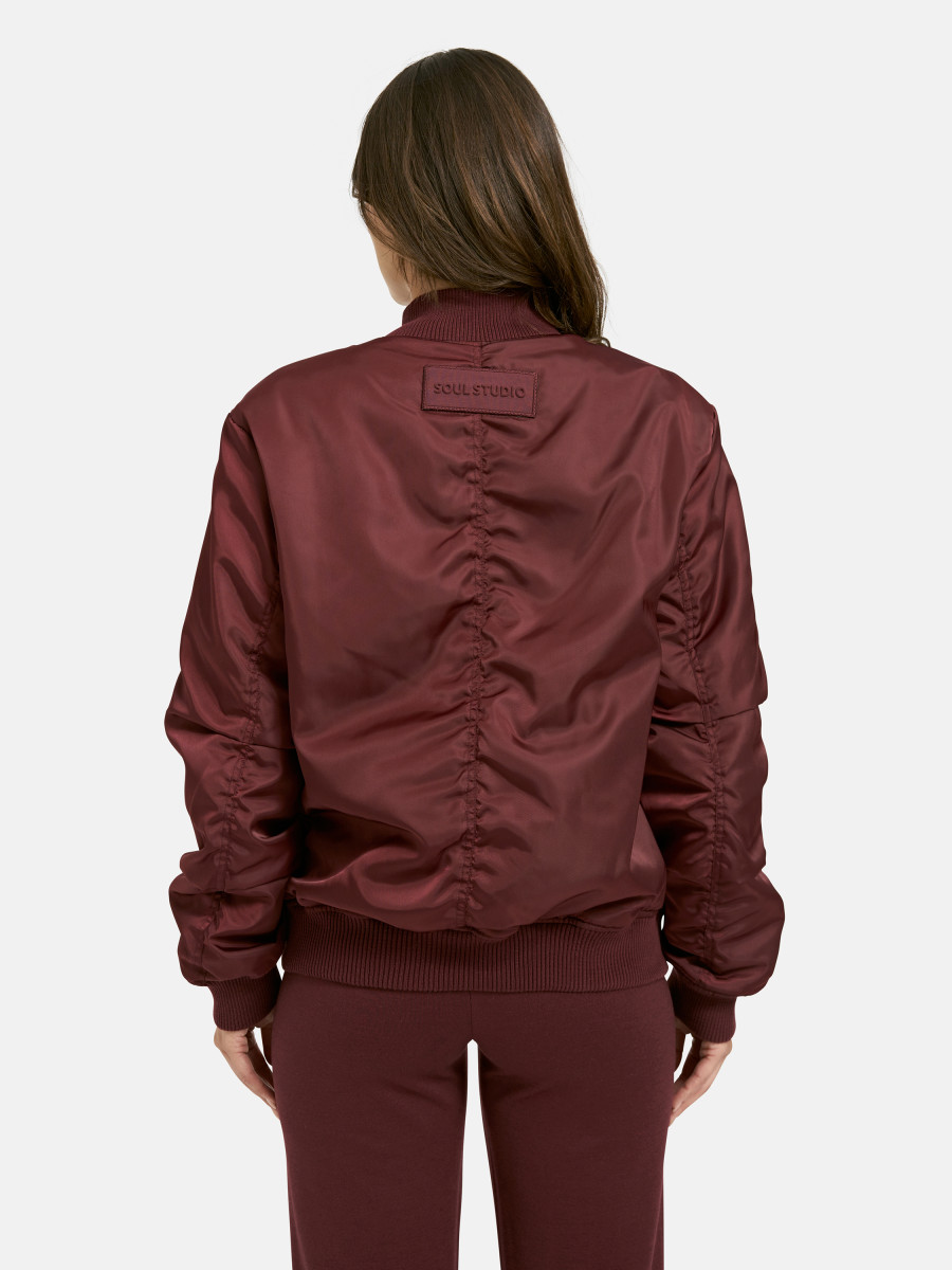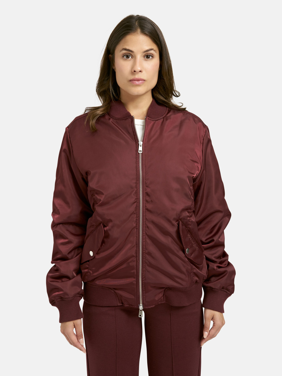 Setze ein modisches Statement mit dieser trendigen Bomberjacke in elegantem Weinrot. Gefertigt aus hochwertigem, glänzendem Nylon-Material, kombiniert diese Jacke urbanen Streetstyle mit zeitloser Eleganz. Die leicht gefütterte Jacke sorgt für optimalen Tragekomfort bei wechselhaften Temperaturen und ist damit der perfekte Begleiter für Frühling, Herbst und kühle Sommerabende.