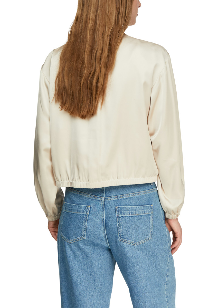 Diese Blousonjacke aus hochwertigem Satin vereint sportive Eleganz mit femininem Chic. Der fließende Stoff schmeichelt Ihrer Silhouette, während die boxy Passform moderne Lässigkeit ausstrahlt. Mit Bomberkragen, praktischen Eingrifftaschen und Reißverschluss ausgestattet, lässt sich die leicht gefütterte Jacke vielseitig stylen. Perfekt für festliche Anlässe, Business-Events oder glamouröse Partynächte – einfach über Blusen oder Kleidern kombinieren.