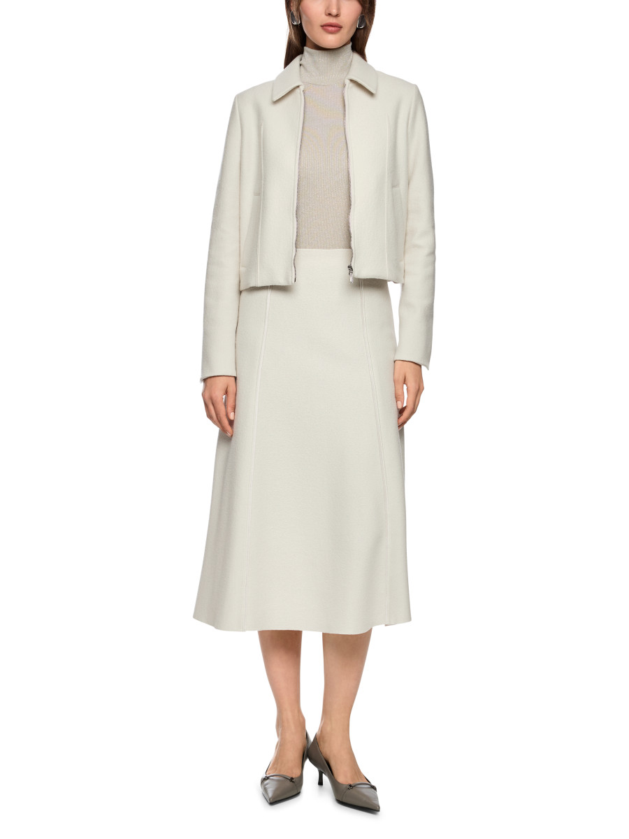 Modische Jacke aus hochwertiger Schurwolle mit praktischem Reißverschluss und eleganten Leistentaschen. Geschlitzte Ärmelabschlüsse und ein Gummizug im rückseitigen Saum sorgen für modernen Look und bequemen Sitz. Das Modell wird am Standort Deutschland gestrickt und auch veredelt. Die Weiterverarbeitung der einzelnen Teile erfolgt in europäischen Partnerbetrieben. Damit ist die Jacke „Knitted in Germany“.