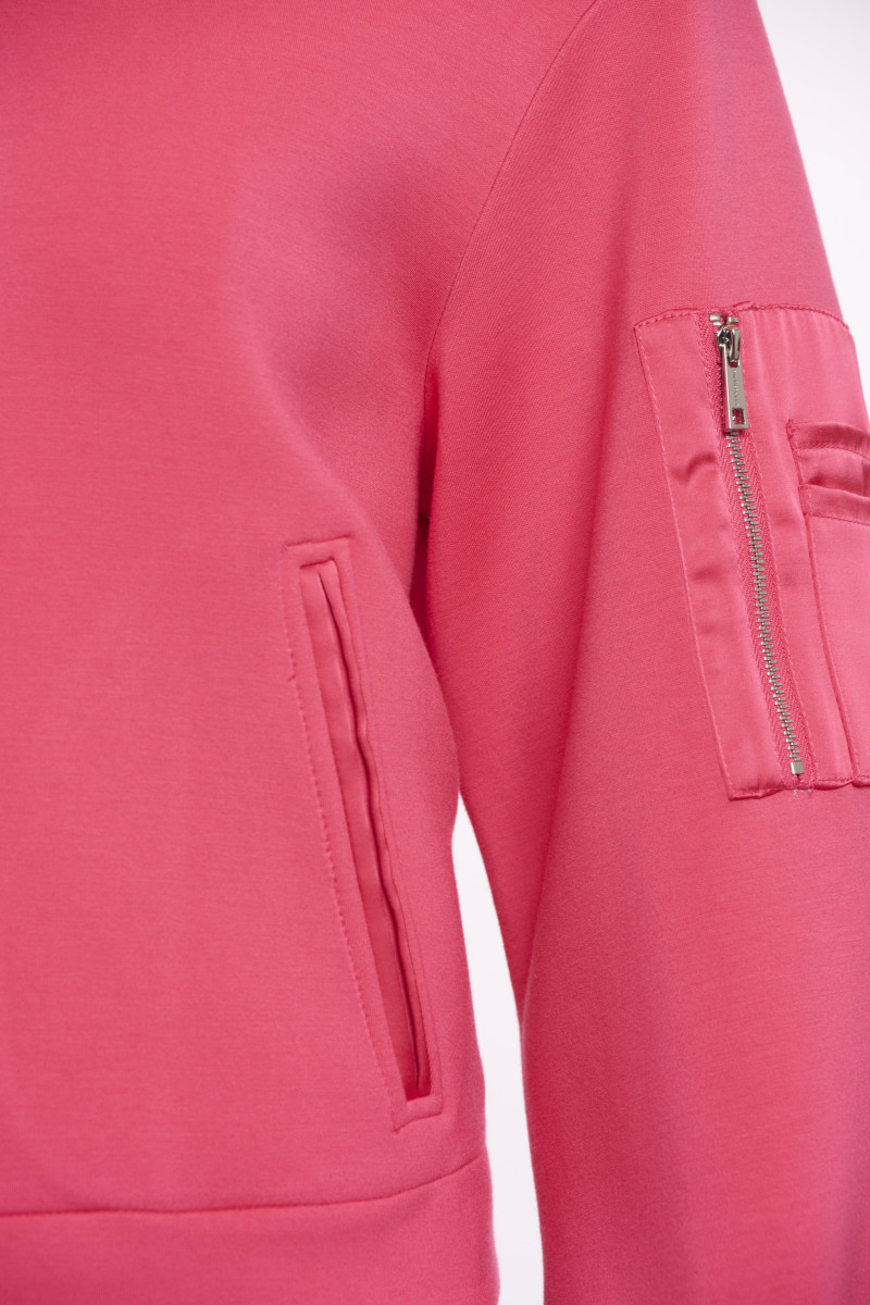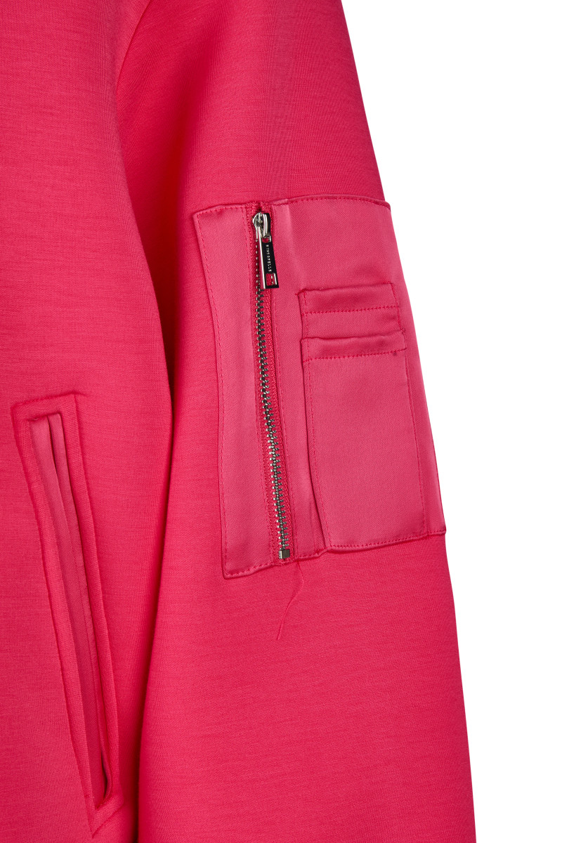 Leichter Stehkragen | Langarm | Durchgehender Reißverschluss | Rippbündchen | Seitliche Eingrifftaschen | Reißverschlusstasche am Arm | Viskose-Mix
