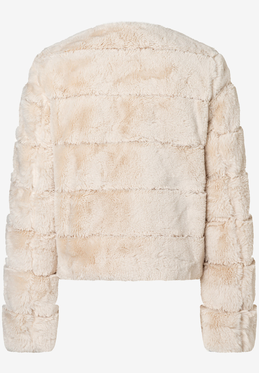 Kuschelg weich und stilvoll zugleich ist die cremefarbene Fake Fur Jacke von MORE & MORE Die kurze, kastige Form des süßen Jäckchens ist perfekt zu eleganten Kleidern, weiten Röcken und fließenden Hose und rundet jedes Abend-Outfit perfekt ab.