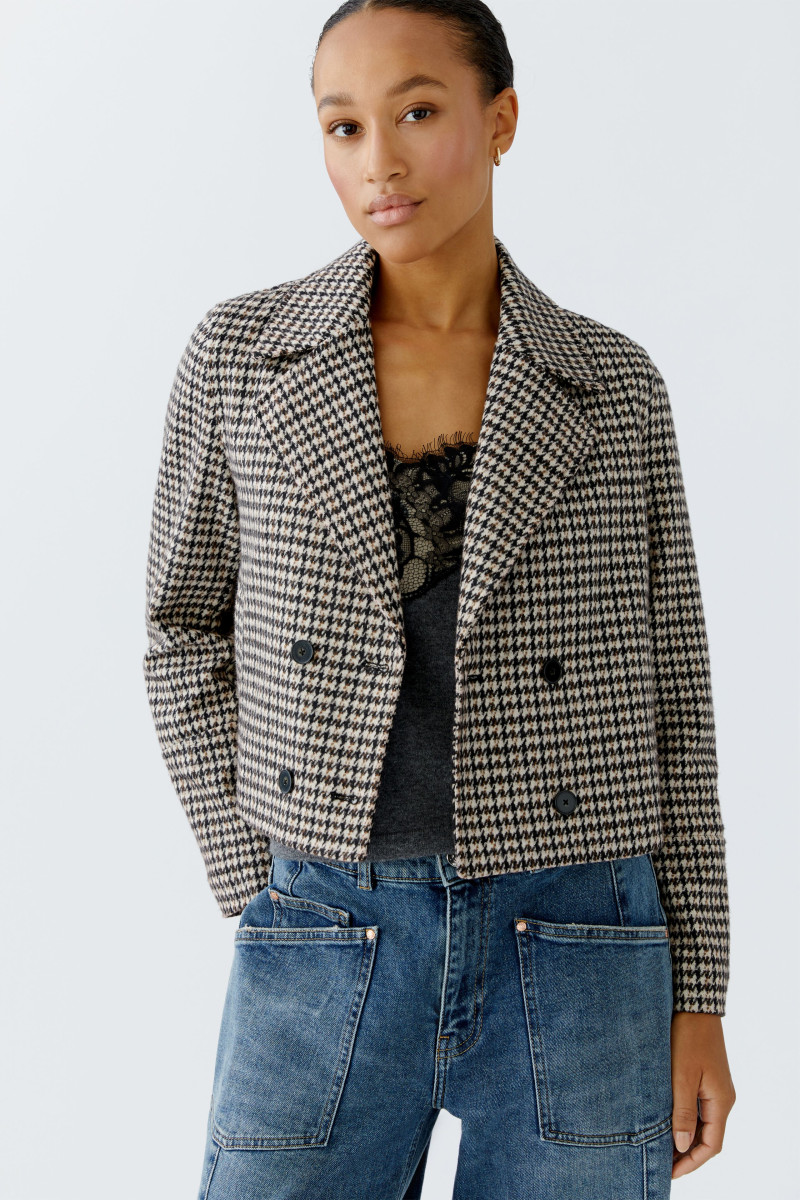 Elastischer Baumwolljersey mit Glanzgarn Boxy geschnitten, verkürzte Länge Klassischer Reverskragen, als Doppelreiher gearbeitet Seitliche Eingrifftaschen Ungefüttert mit wertiger Nahtverarbeitung Schlitz in der hinteren Mitte * Länge bei Größe 36: 52cm