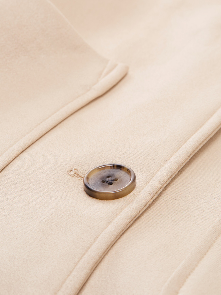 Leichte Jacke mit Kragen, Knopfleiste und aufgesetzten Taschen. Ideal als Übergangsjacke aus einem weichen, knitterarmen Fake-Wildleder.Lief.-Art-Nr: 1050125