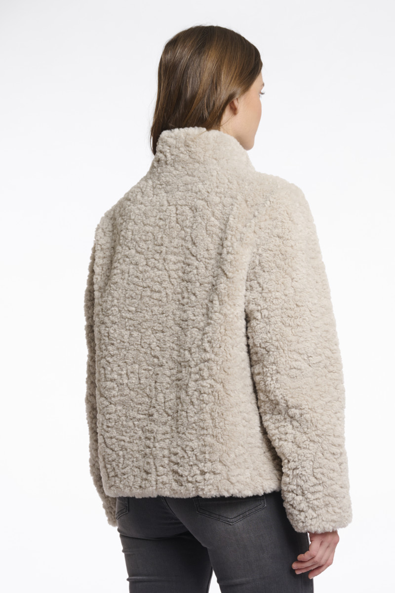 Die Jacke von Rino & Pelle in kuscheliger Teddyfell-Optik ist die perfekte Wahl für kalte Tage mit Stil. Das weiche, flauschige Material sorgt für wohlige Wärme, während der hochgeschlossene Kragen und der verdeckte Reißverschluss einen cleanen Look schaffen. Ob zur Jeans oder über einem Kleid - diese Jacke ist ein echter Wohlfühl-Allrounder.