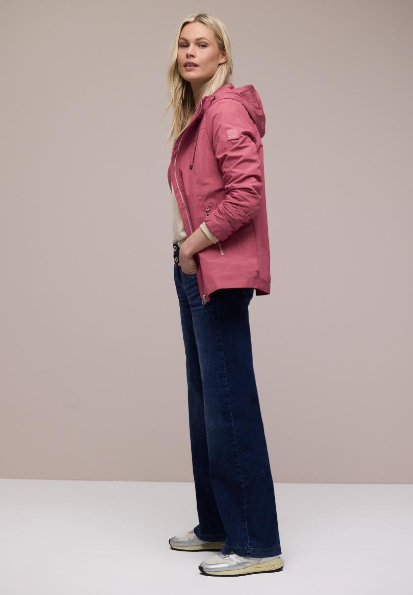 Dieser moderne Windbreaker von Street One ist eine leichte, sportliche Jacke für Damen, die sich besonders an windigen Tagen bewährt. Der durchgehende Reißverschluss und die Kapuze mit Tunnelzug sorgen für einen cleanen Look und erlauben eine individuelle Anpassung. Seitliche Taschen bieten Platz für Kleinigkeiten und runden das funktionale, lässige Design ab.Lief.-Art-Nr: A202197