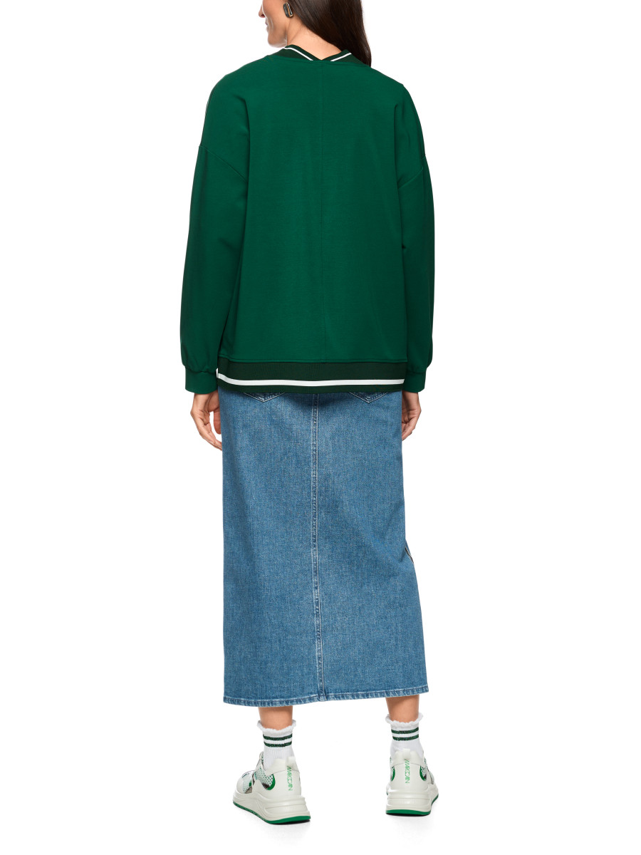 Locker geschnittene Damen Jacke mit V-Ausschnitt und vier großen Knöpfen, die durch kontrastfarbige Ringel-Details einen sportiven Akzent erhält. Die überschnittenen Schultern und die praktischen Taschen machen sie zu einem vielseitigen Begleiter für den Alltag. Der weiche Mix aus Baumwolle, Modal und Elasthan sorgt für angenehmen Tragekomfort; das Model ist 179 cm groß und trägt N3/38.Lief.-Art-Nr: AS 31.12 J54