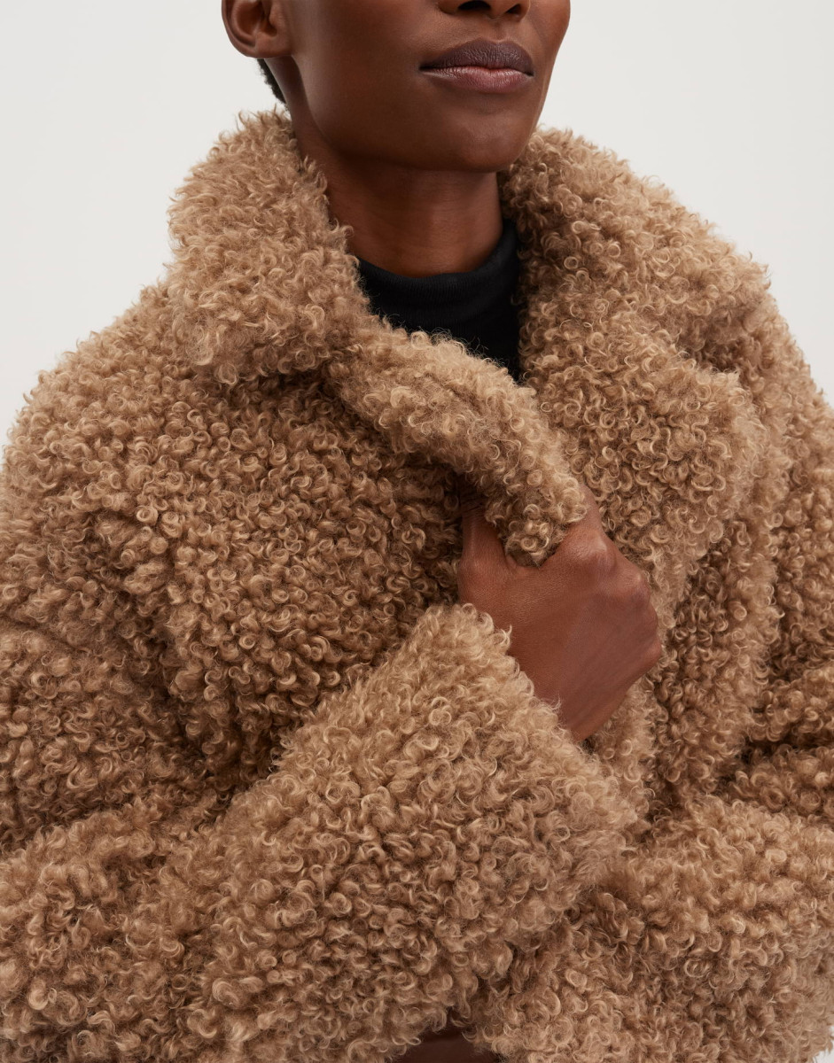 Diese kuschelige Jacke ist das perfekte Essential für modische und komfortable Looks in der kühlen Jahreszeit. Gefertigt aus einem voluminösen, dicken Material in einer auffälligen Bouclé-Struktur, erinnert sie an den beliebten Teddy-Stoff und bietet einen besonders weichen und wärmenden Griff.