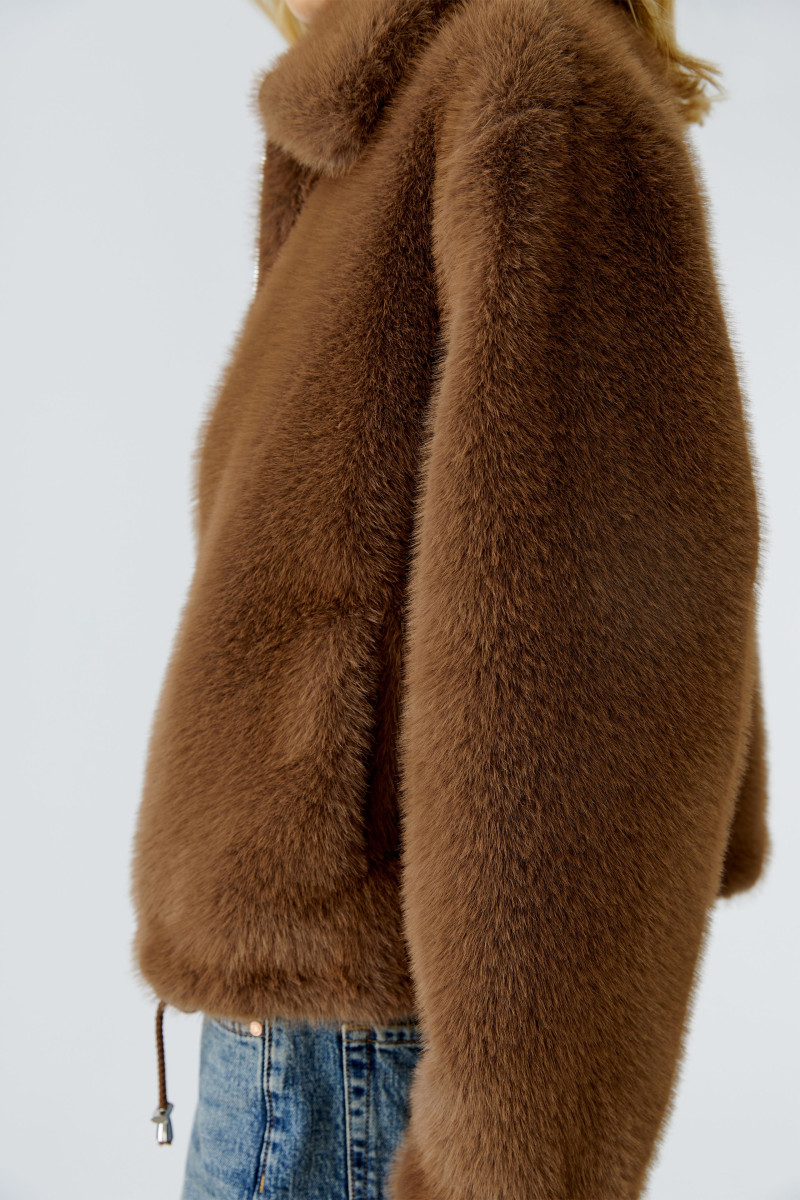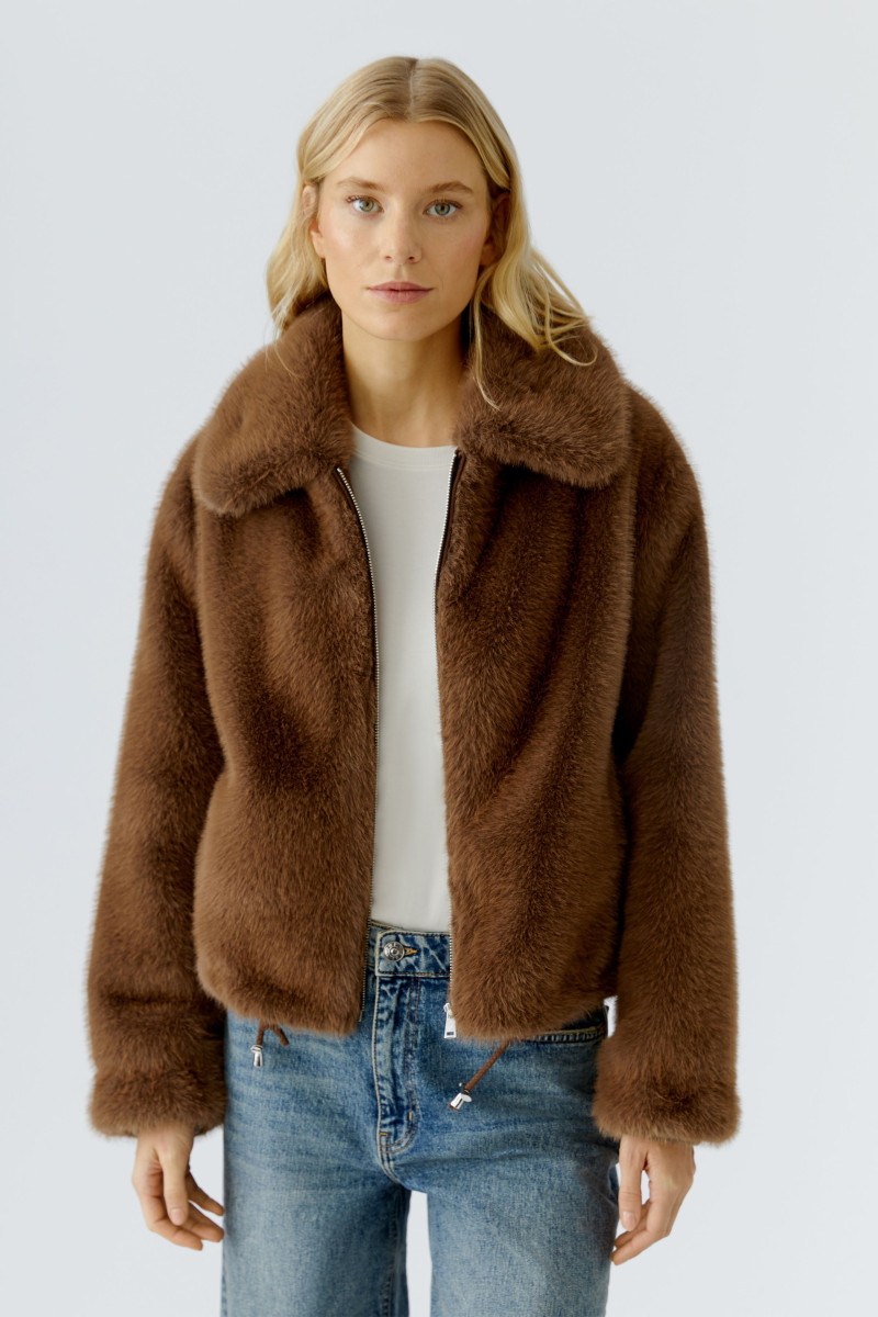 Diese Jacke aus superweichem Kunstfell ist gerade geschnitten und in verkürzter Länge gehalten. Sie verfügt über einen kuscheligen Bubikragen, einen Metallreißverschluss und lange Ärmel mit wärmenden Strickbündchen. Seitliche Eingrifftaschen, ein regulierbarer Saum sowie ein vollständiges Futter runden das Design ab.