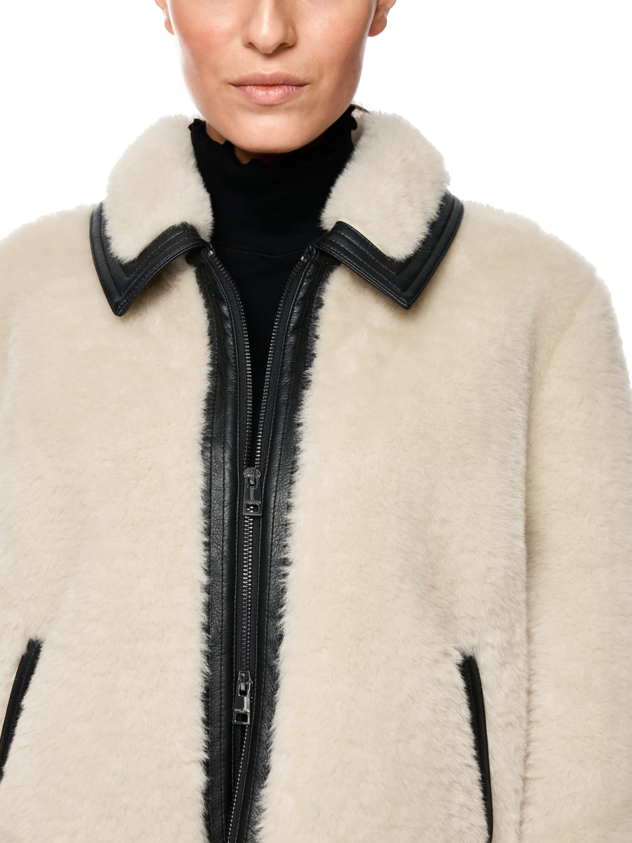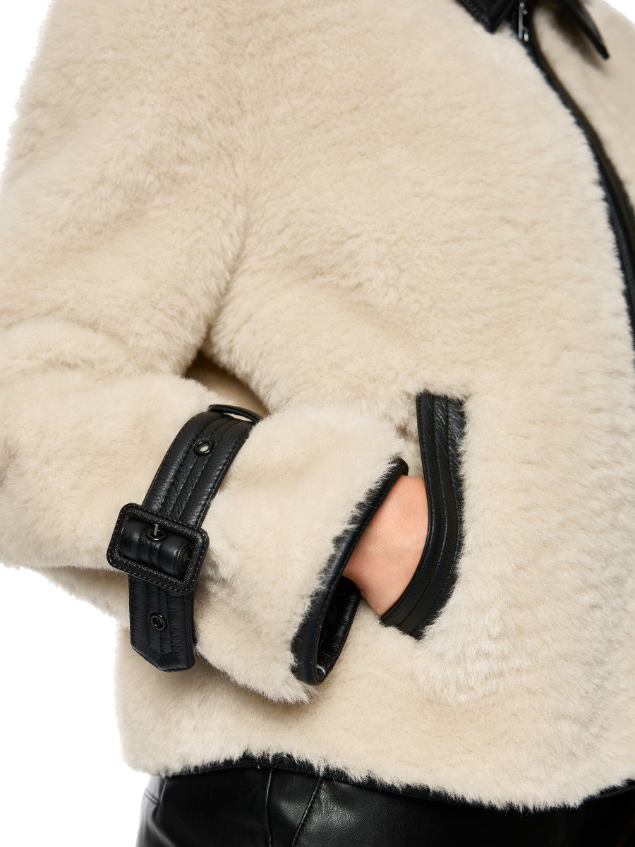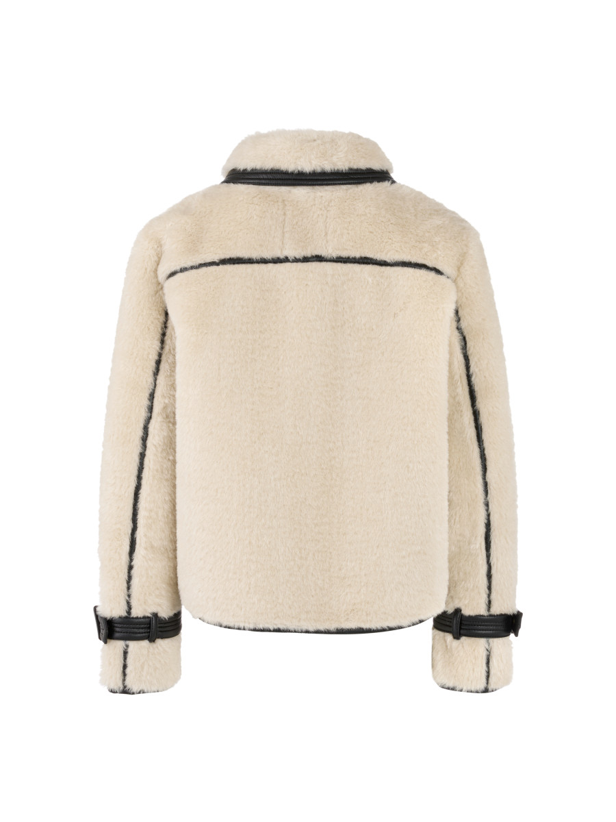 Kunstfelljacke mit Riemendetail | Weiche Kunstfelljacke mit klassischem Hemdkragen und Kunstlederfutter. Zwei seitliche Eingriffstaschen bieten Stauraum. Ein dekorativer Riemen mit Schnalle an den Ärmeln setzt einen stilvollen Akzent. Die Jacke kombiniert Komfort mit modischem Statement und ideal für kühlere Tage. Gerader Schnitt | Seitliche Eingriffstaschen | Innenfutter aus Kunstleder | Mit Reißverschluss | Das Model ist 179 cm groß und trägt N3/38.