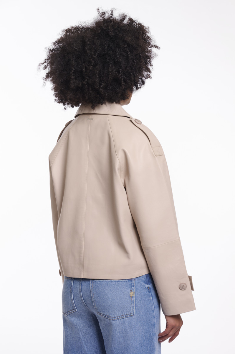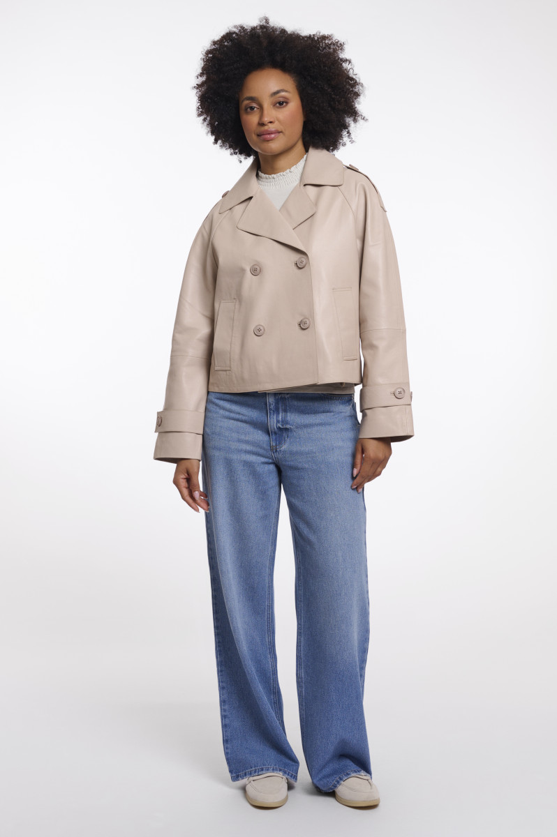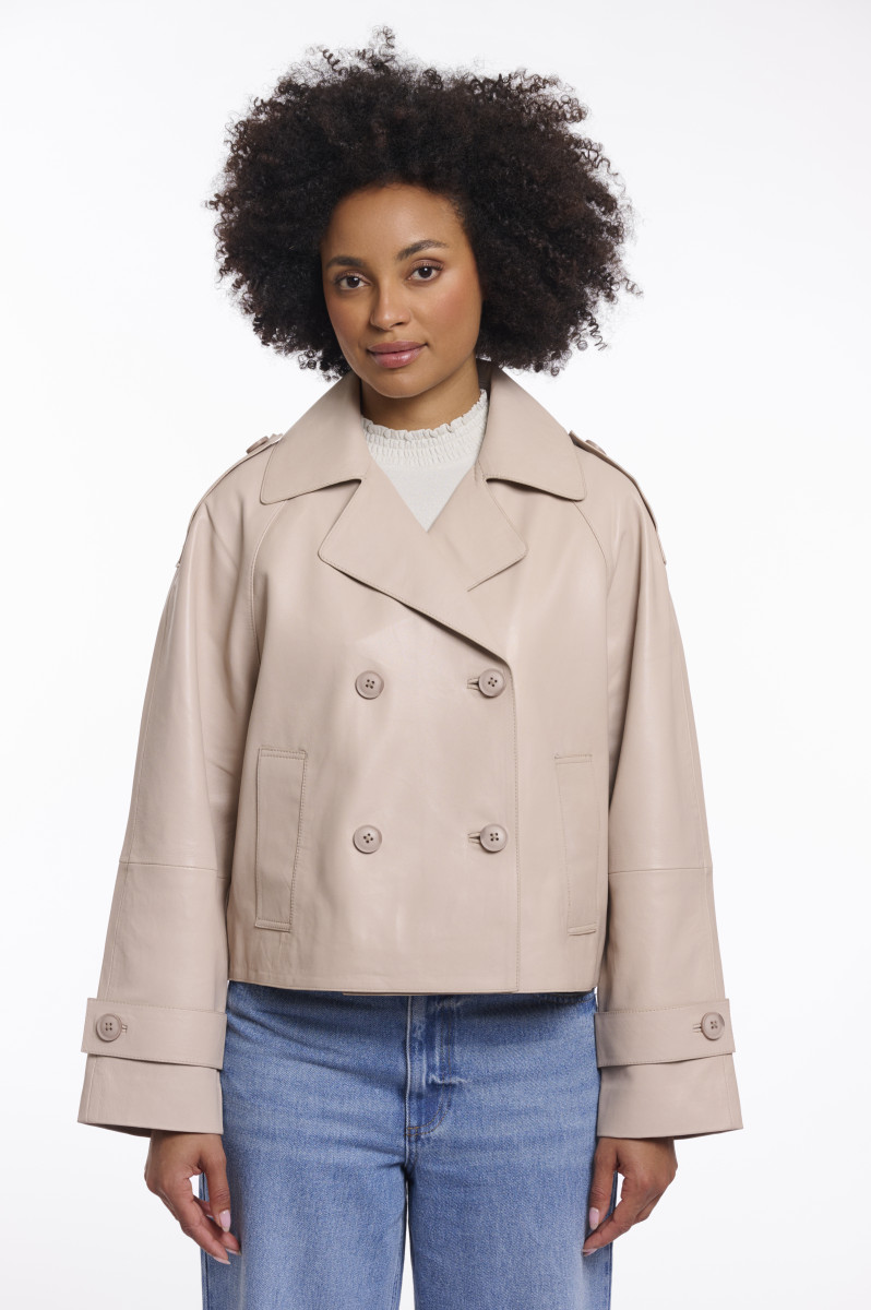 Reverskragen | Langarm | Zweireihige Knopfleiste | Seitliche Eingrifftaschen | Lammleder | Kurz geschnitten