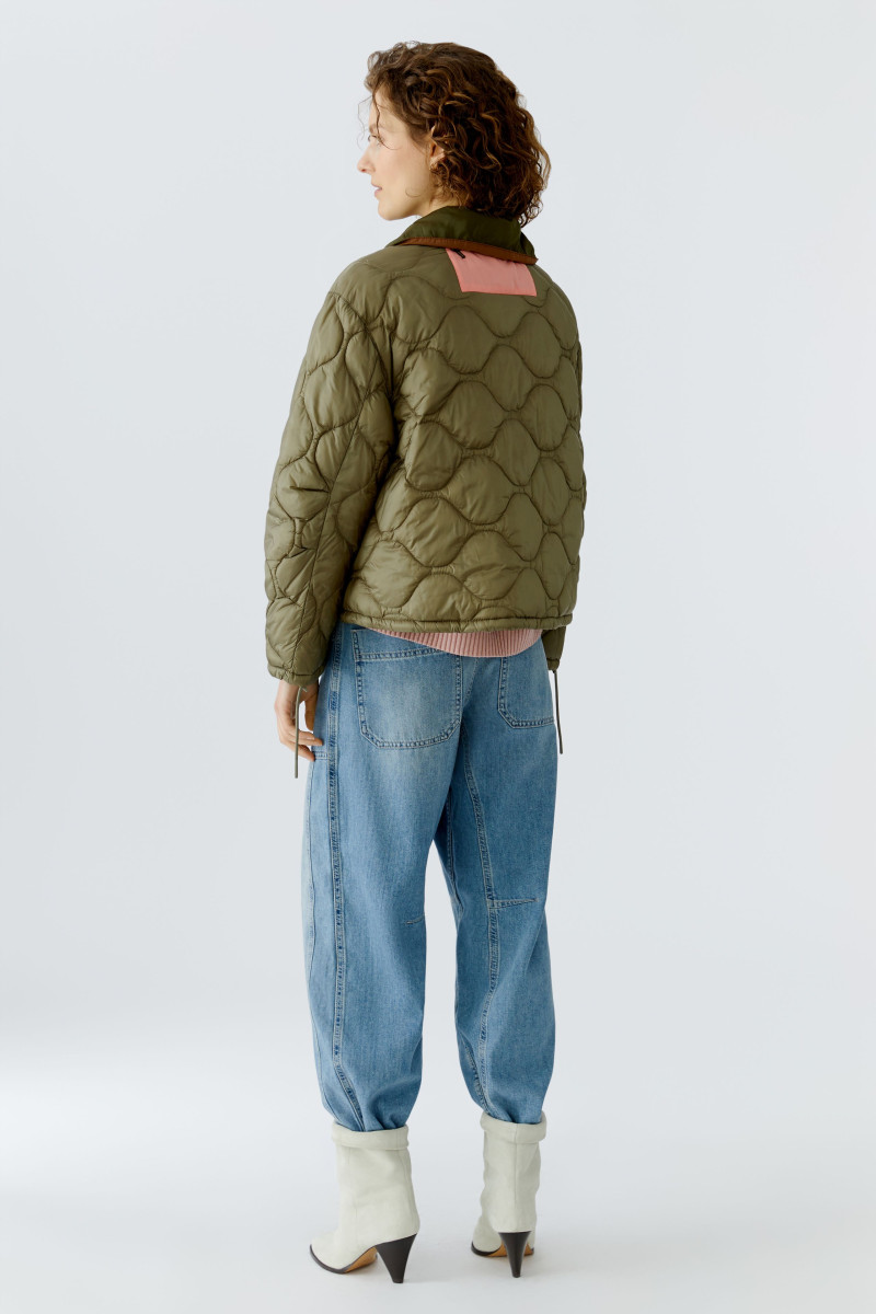Gestepptes Nylon mit leichtem Padding Oversized geschnitten, verkürzte Länge Kragen kann abgeknöpft und auch von beide Seiten, je nach Farblaune, gestylt werden Überschnittene Schulter, fällt locker zum Langarm Ärmel und Saum durch Kordel in der Weite justierbar Zwei aufgesetzte Taschen und zwei Eingriffstaschen * Länge bei Größe 36: 58cm