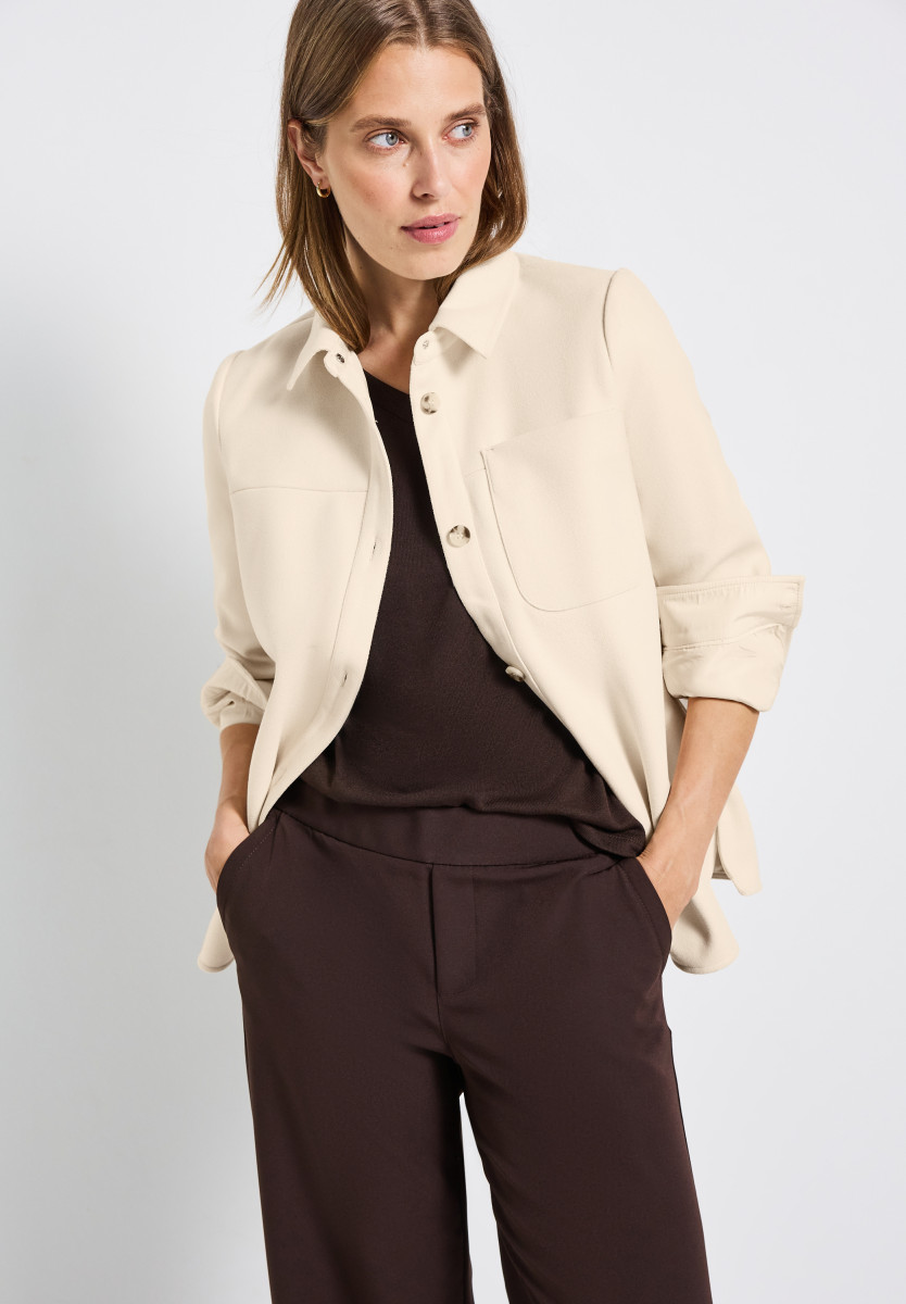 Das Overshirt von Street One für Damen präsentiert sich im angesagten Hemdjacken-Stil und in Wolloptik. Knopfleiste, Hemdkragen und eine aufgesetzte Brusttasche sorgen für einen modischen Twist, während seitliche Schlitze den entspannten Fit unterstreichen. Kombiniere das Overshirt zu Jeans für unkomplizierte Alltags-Outfits mit Stil. Jacke mit Knopfleiste Hemdkragen Brusttasche Seitliche Schlitze Material in Wolloptik Material: Obermaterial: 90% Polyester, 10% Viskose; Futter: 100% Polyester