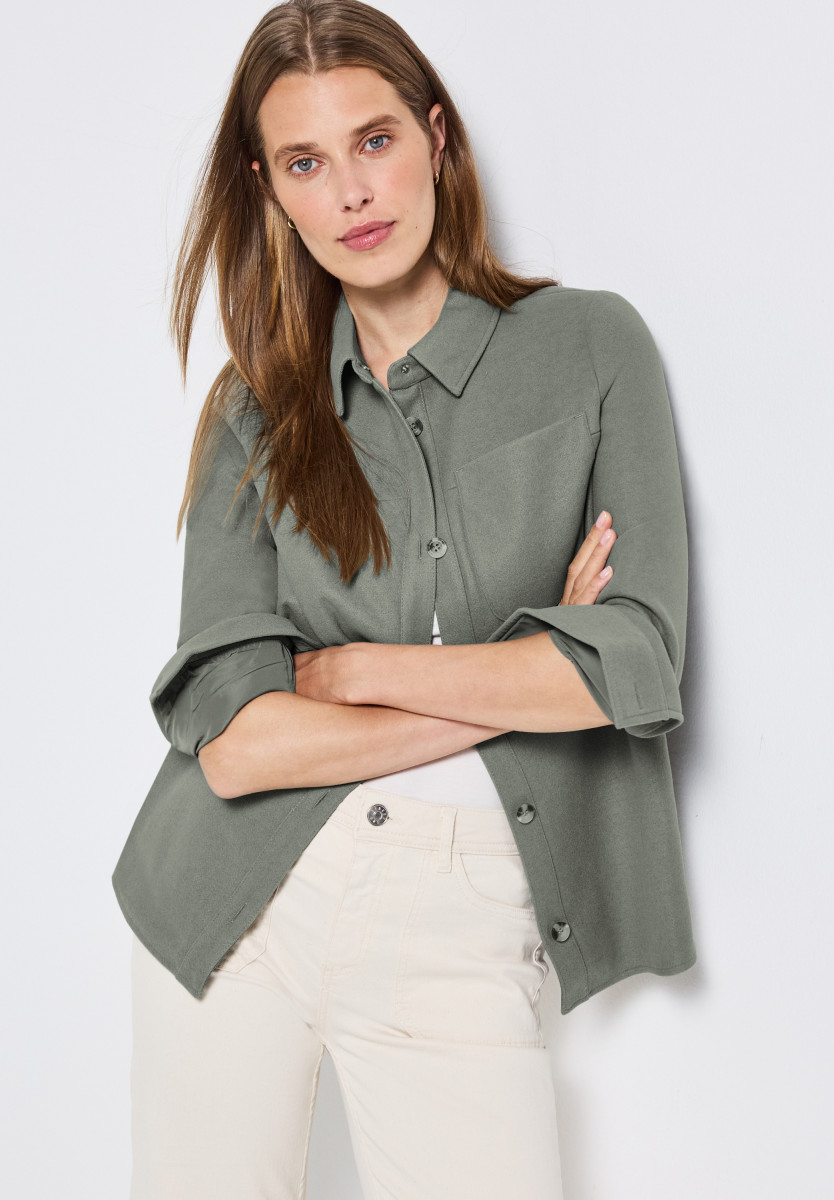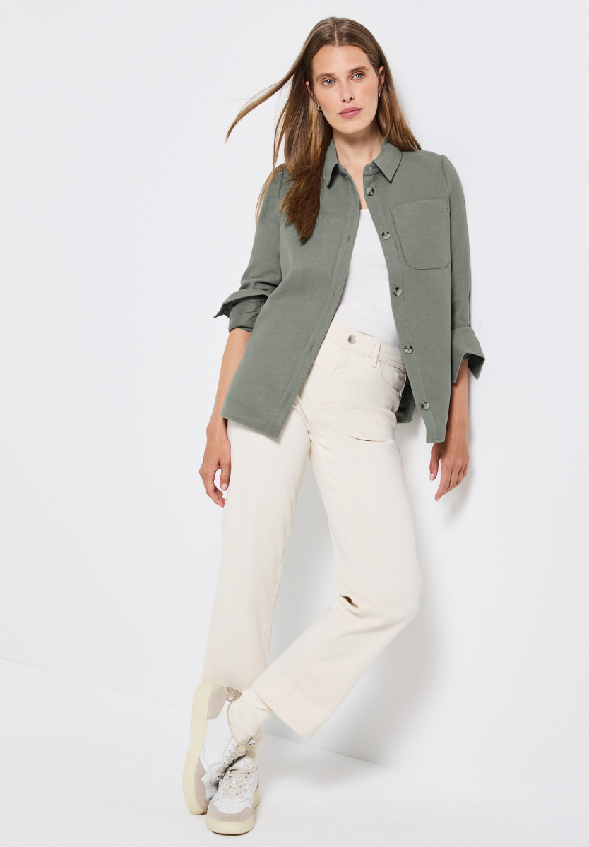 Das Overshirt von Street One für Damen präsentiert sich im angesagten Hemdjacken-Stil und in Wolloptik. Knopfleiste, Hemdkragen und eine aufgesetzte Brusttasche sorgen für einen modischen Twist, während seitliche Schlitze den entspannten Fit unterstreichen. Kombiniere das Overshirt zu Jeans für unkomplizierte Alltags-Outfits mit Stil. Jacke mit Knopfleiste Hemdkragen Brusttasche Seitliche Schlitze Material in Wolloptik Material: Obermaterial: 90% Polyester, 10% Viskose; Futter: 100% Polyester