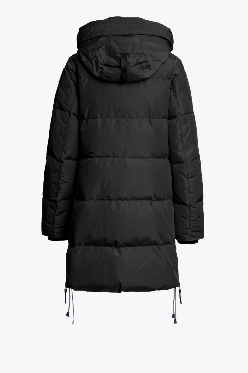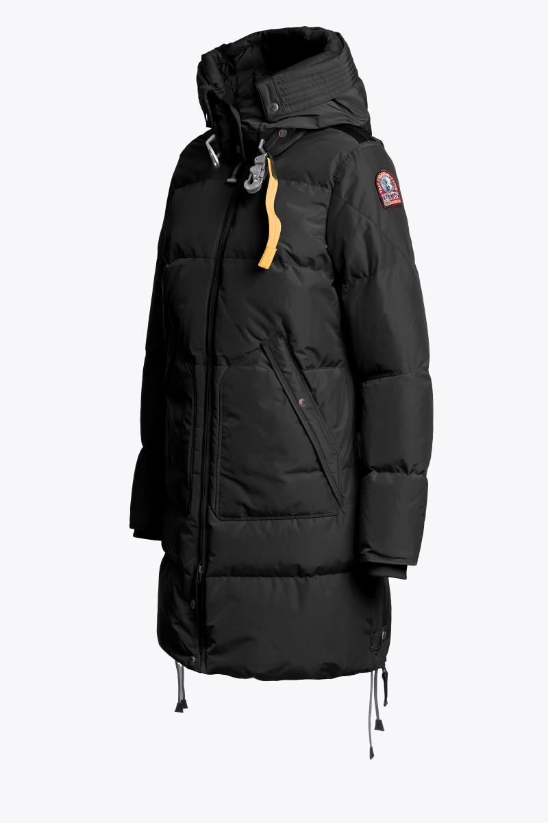 Außenmaterial: recyceltes, laminiertes Nylon-Oxford-Gewebe mit wasserabweisender Behandlung | Zwei-Wege-Reißverschluss vorne | Mit Tunnelzug verstellbare Kapuze | Zwei Taschen mit Knöpfen | Gerippte Bündchen | Seitenschlitze mit Reißverschluss | Parajumpers-Patch am Ärmel und abnehmbarer ikonischer Haken mit gelbem Band am Halsverschluss