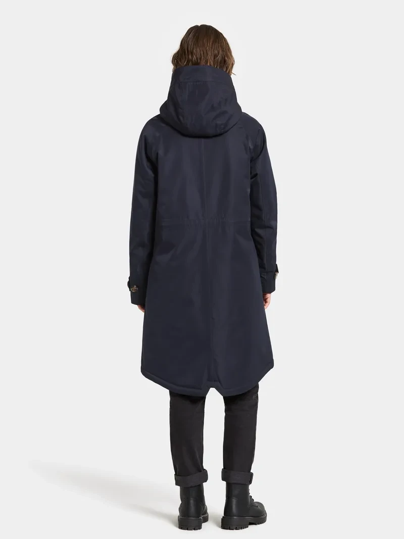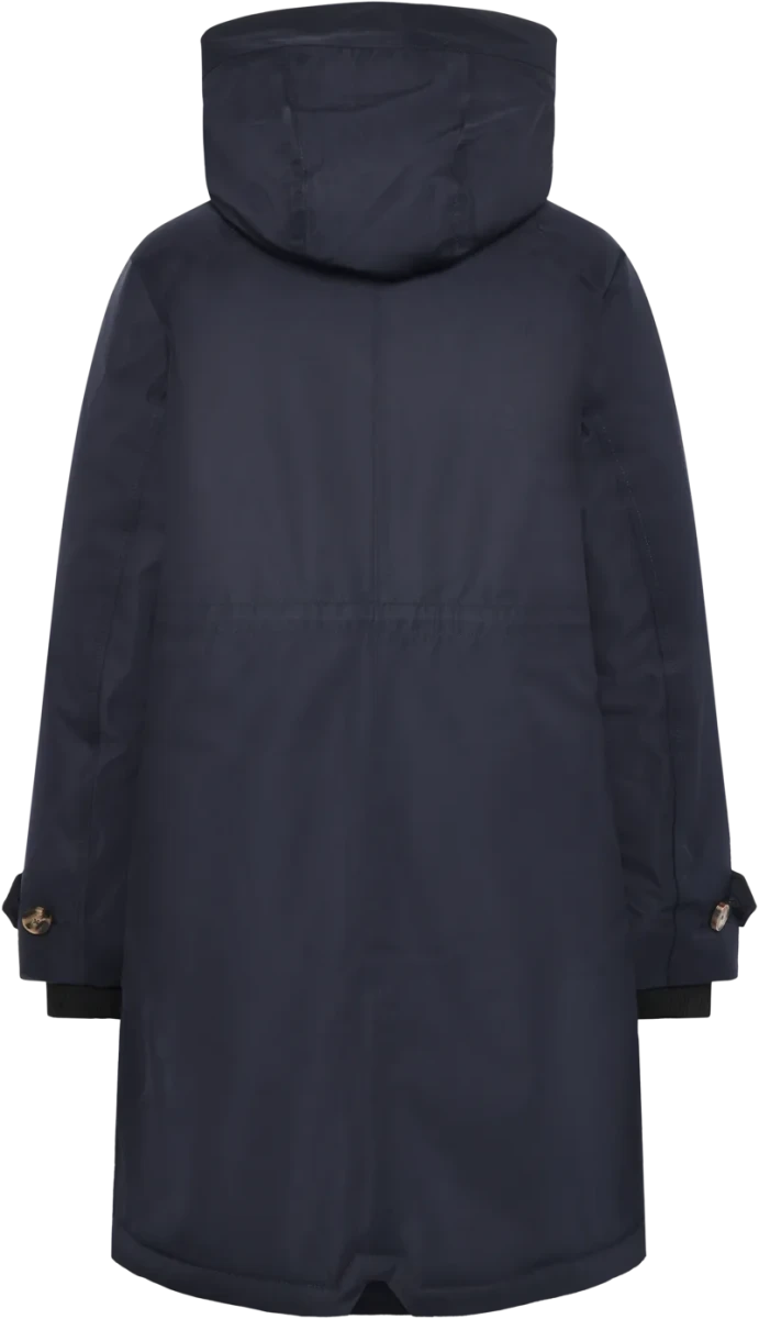 Die verstellbare Taille mit einem internen Kordelzug bietet eine individuelle Passform, während die elastischen Bündchen mit Knöpfen dafür sorgen, dass die Kälte draußen bleibt. Der Parka hat praktische Seitentaschen mit Knöpfen und eine Innentasche mit Reißverschluss für sichere Aufbewahrung. Der Reißverschluss liegt dank des Kragendesigns nie direkt am Kinn an, was zusätzlichen Komfort bietet.
