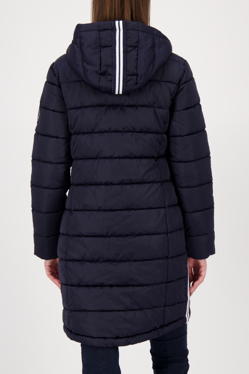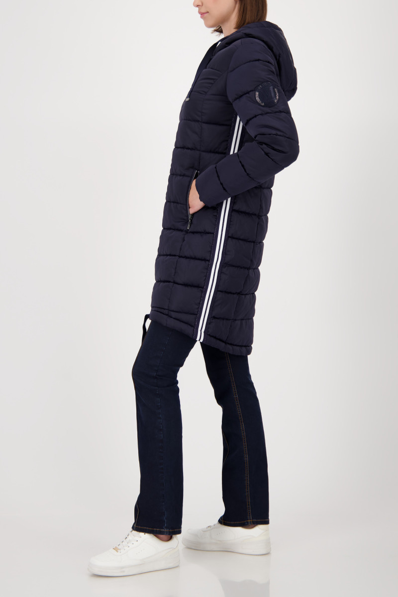 Gesteppte Verarbeitung | Regular Fit | Kapuze mit Bindeband | Langarm | Logopatch am Ärmel | Seitentasche mit Reißverschluss | Innentasche | 2-Wege-Reißverschluss | Streifen mit Lurex | Verlängerte Rückseite | Saum mit Bindeband
