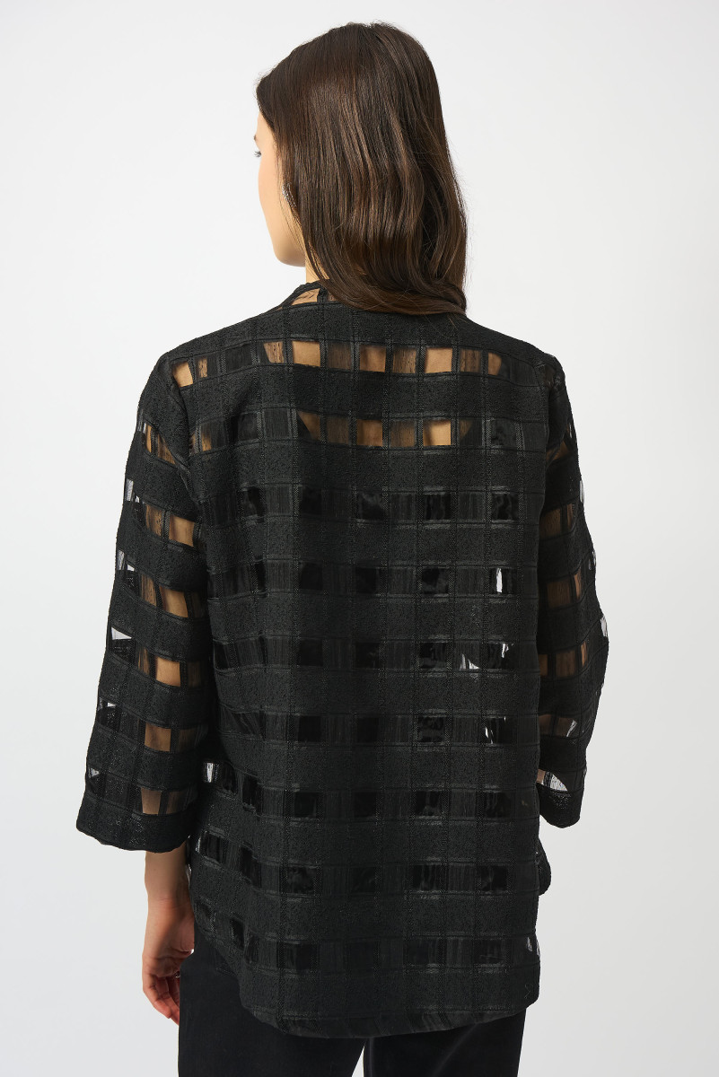 Diese Jacke mit ihrem ausgefallenem Karomuster ist das ultimative Modeteil in Ihrem Kleiderschrank. Die Trapez-Silhouette verleiht diesem schicken Design ein leichtes und angenehmes Tragegefühl. Die Dreiviertelärmel in Kombination mit dem Rundhalsausschnitt schaffen einen eleganten Look. Der Statement-Knopfverschluss vorn verleiht dieser atemberaubenden Jacke einen Hauch von Flair.