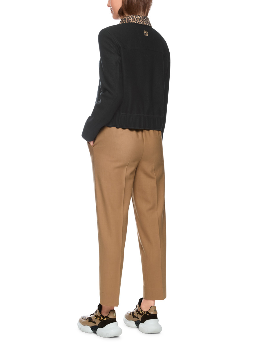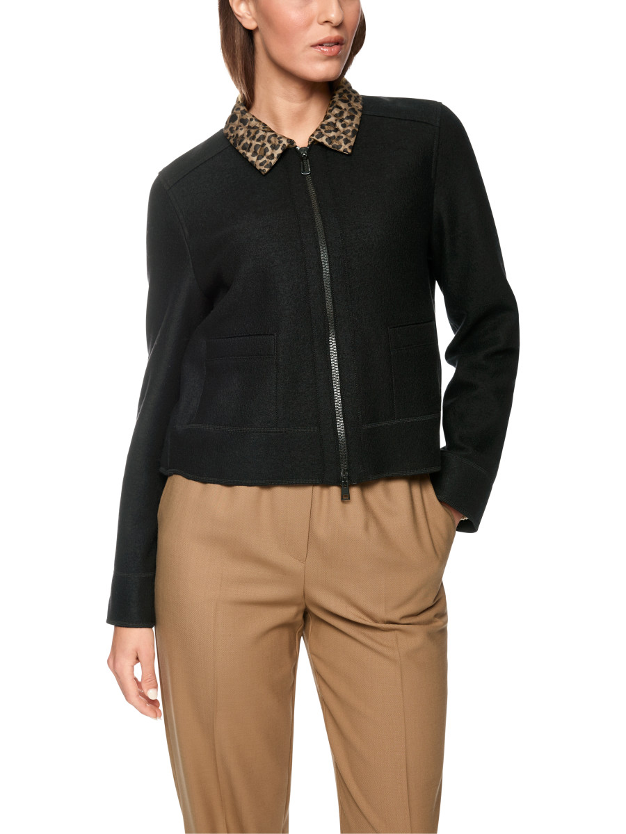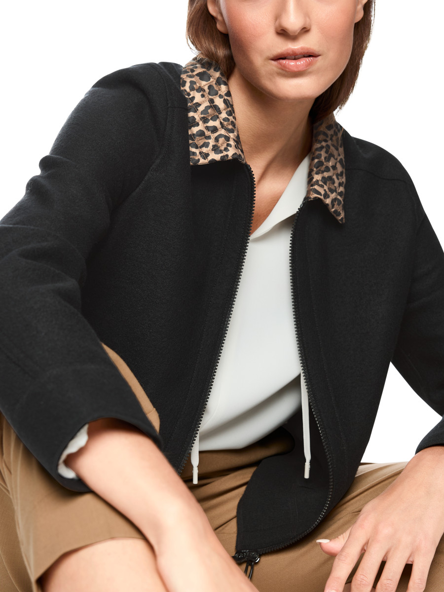 Walkjacke – Knitted in Germany | Hochwertige Jacke aus 100 % Schurwolle in Walkqualität – Knitted in Germany. Mit Zwei-Wege-Zipper und abgesteppter Eingriffstasche. Der wattierte Kragen mit Leoprint setzt einen stilvollen Akzent. Ein eingenähtes Gummiband am Rücken formt die Silhouette dezent. Warm, bequem und modisch zugleich. Die Jacke wird am Standort Deutschland gestrickt und auch veredelt. Die Weiterverarbeitung der einzelnen Teile erfolgt in europäischen Partnerbetrieben. Damit ist das Modell „Knitted in Germany“. Lockerer Schnitt | Knitted in Germany | Zwei-Wege-Zipper | Hüftlang | Das Model ist 179 cm groß und trägt N3/38.