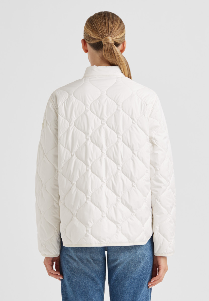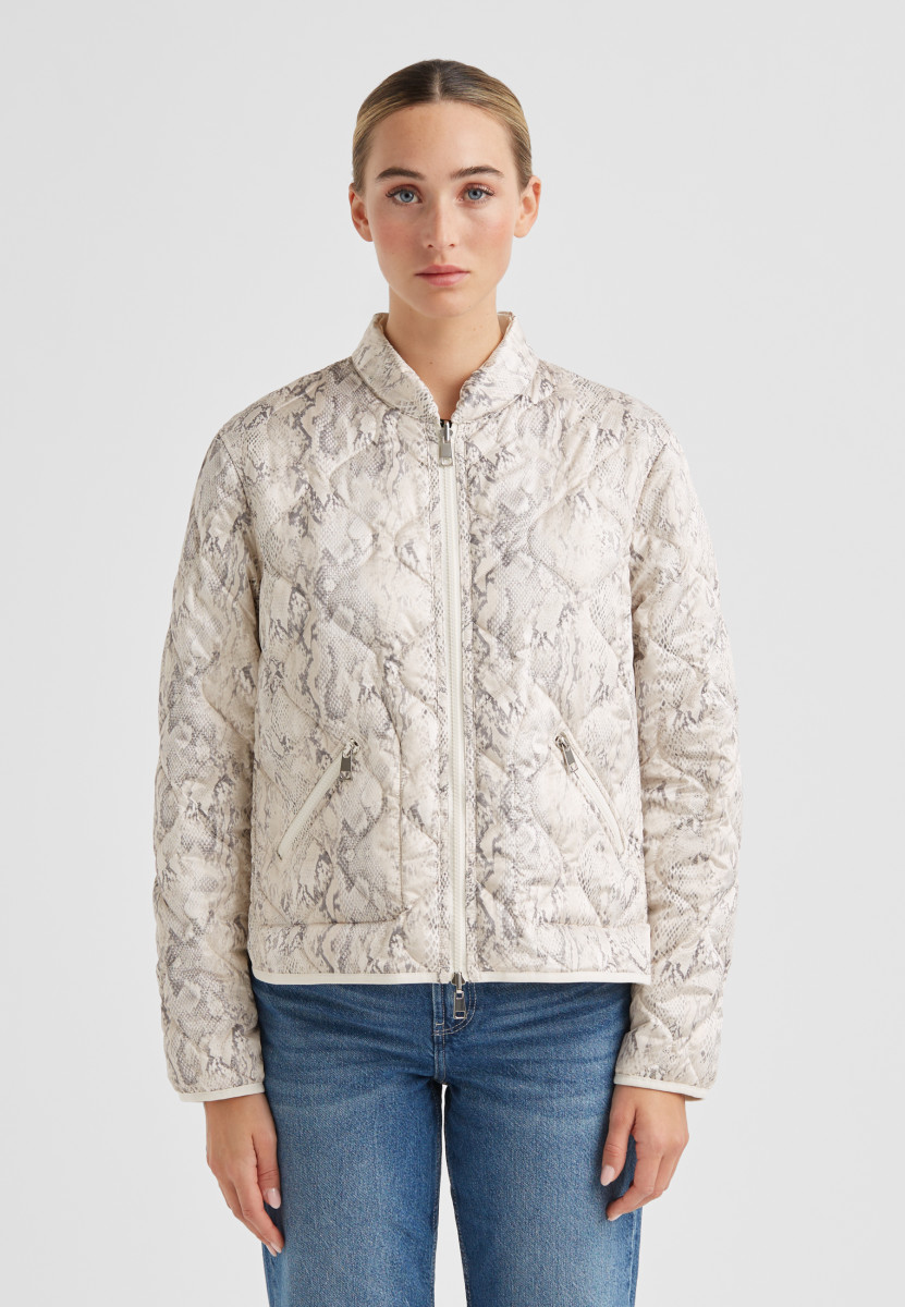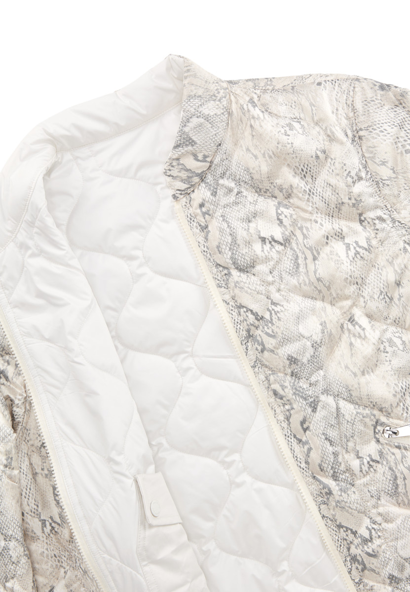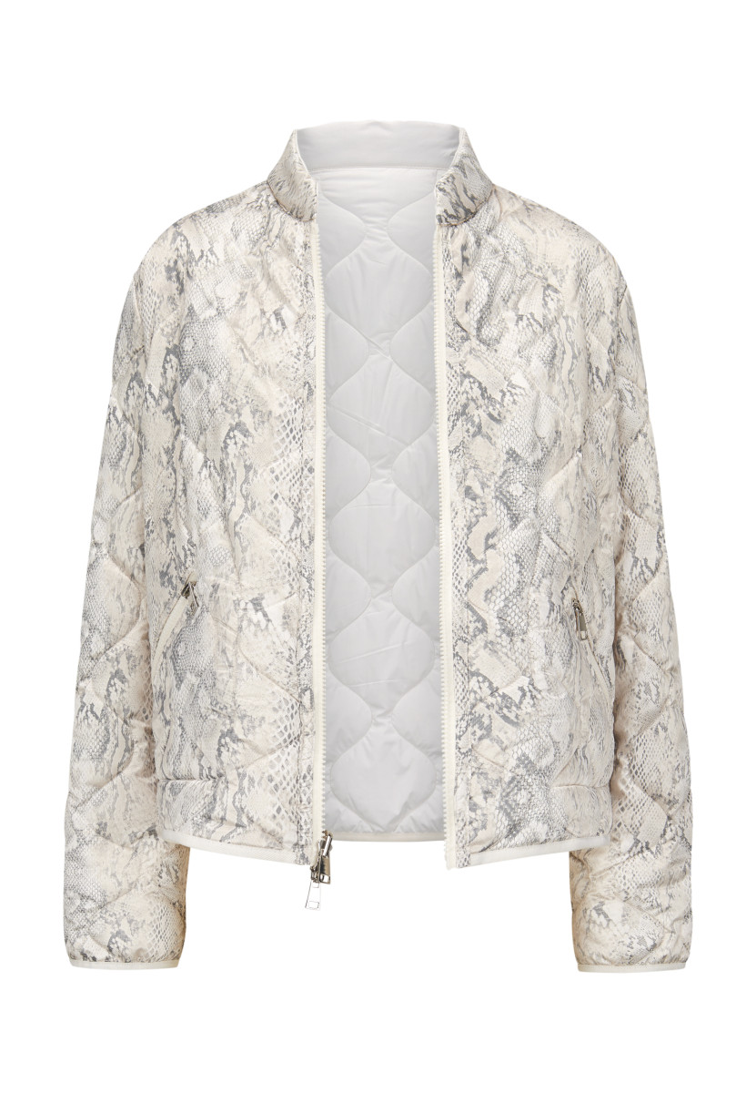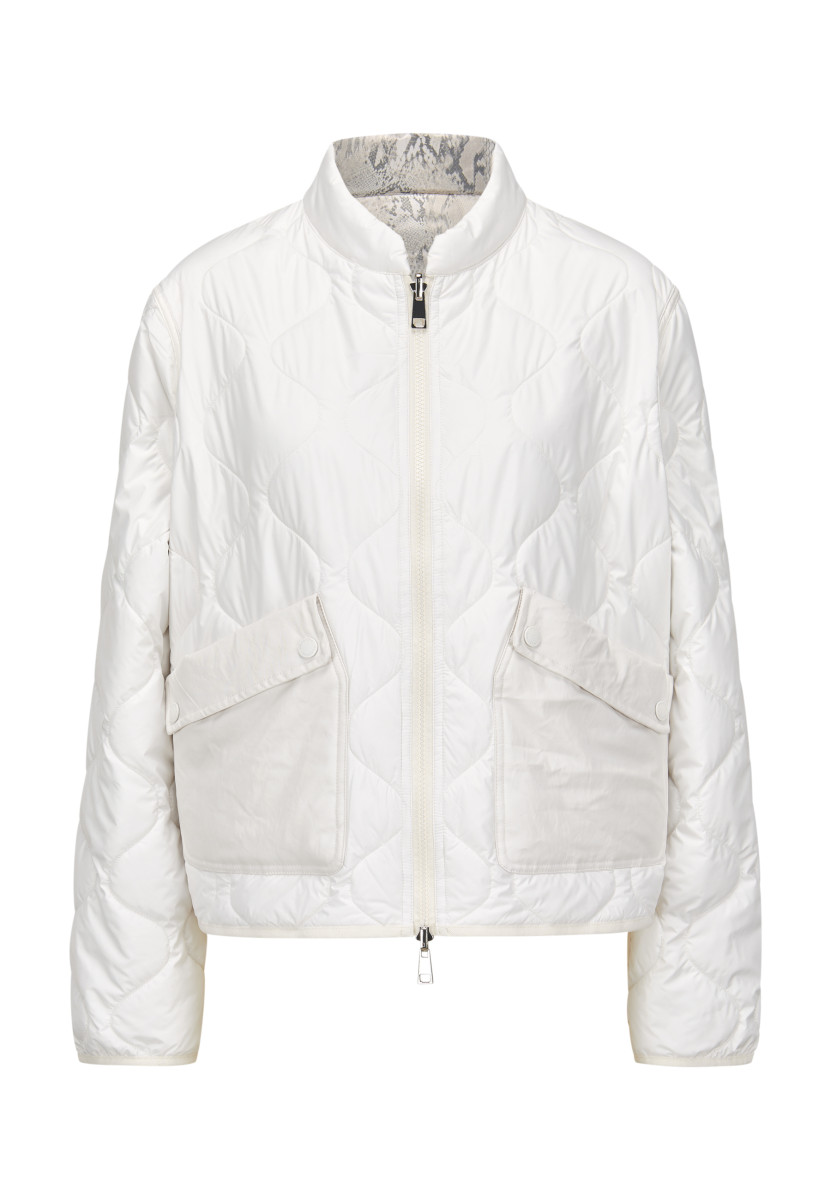 Mit Stehkragen | Wende-Reißverschluss | Zwei-Wege-Reißverschluss | Seitliche Zippertaschen auf Printseite | Seitentaschen mit doppelt geknöpfter Patte auf gesteppter Seite | Elastischer Einfass an Ärmel- und Saumkante