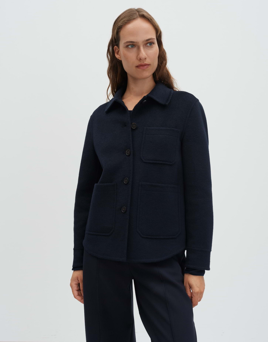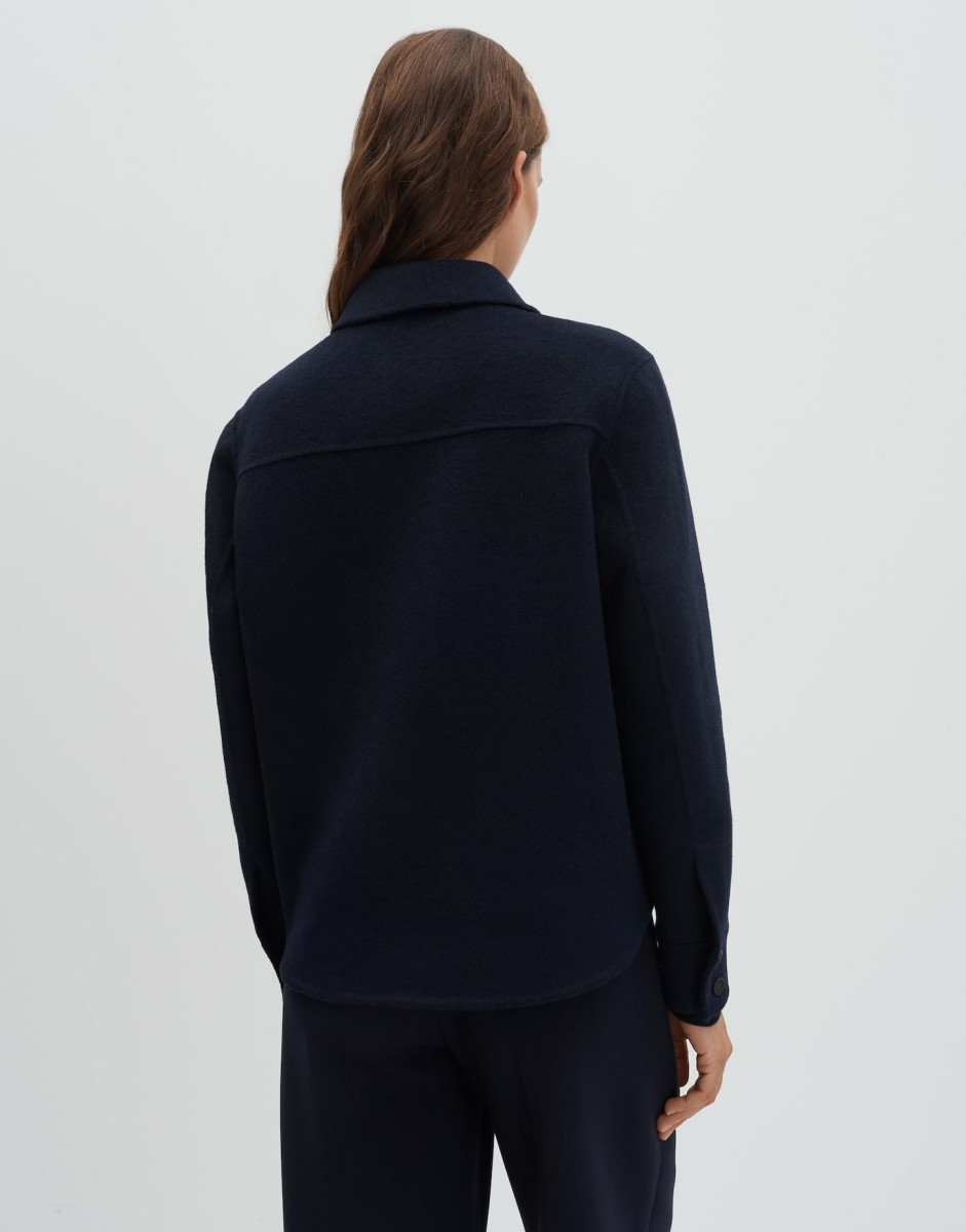 Lockere Passform | Überschnittene Schulter mit Langarm | Hemdblusenkragen | Wolle | Webware | Gekämmte Oberfläche | Weicher Griff | Formstabil | Aufgesetzte Taschen vorne | Knopfleiste vorn
