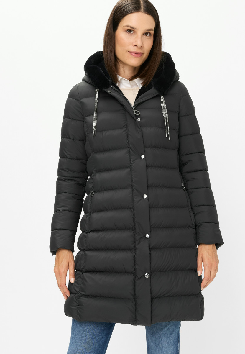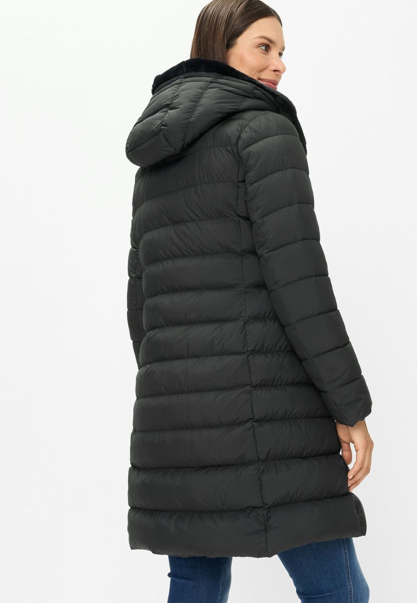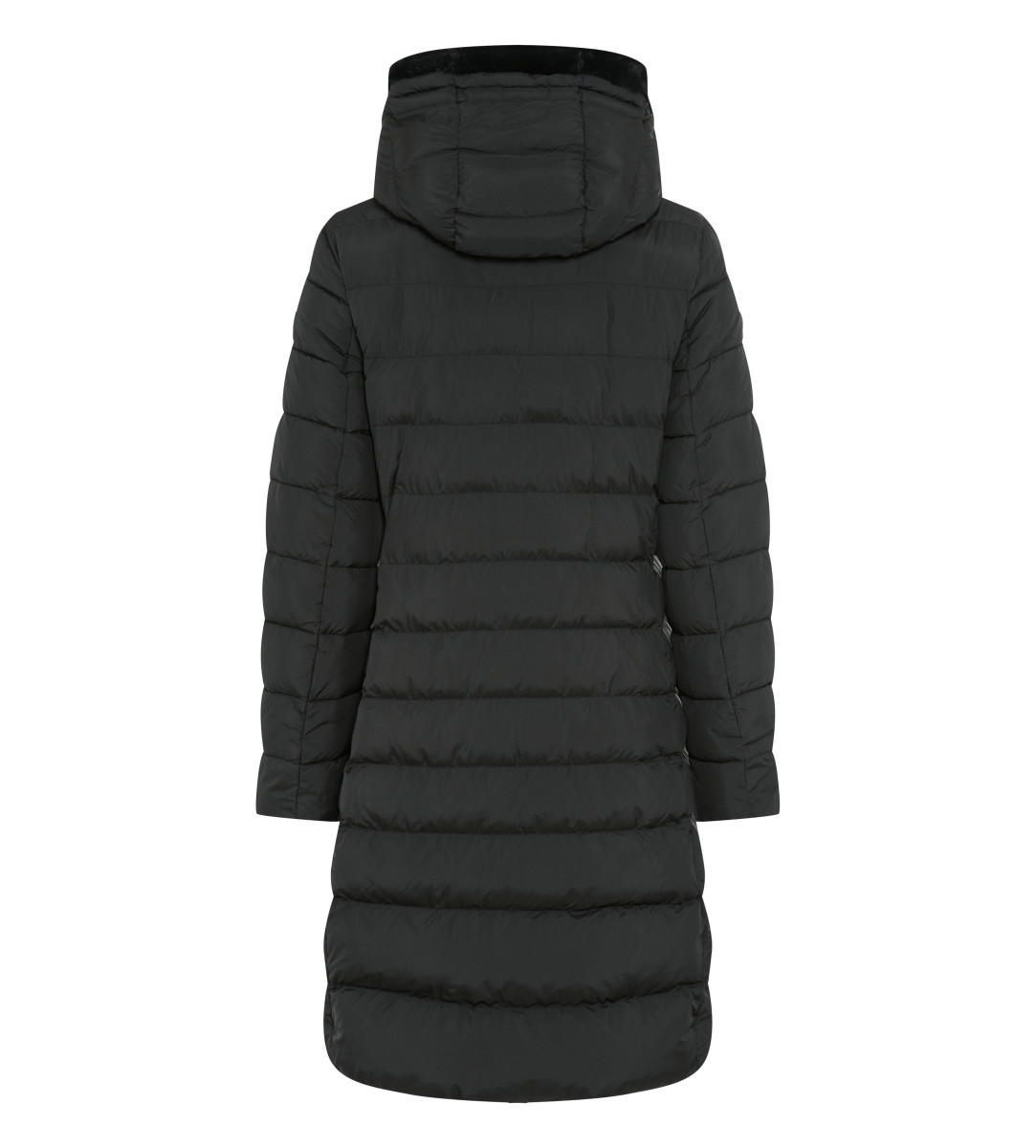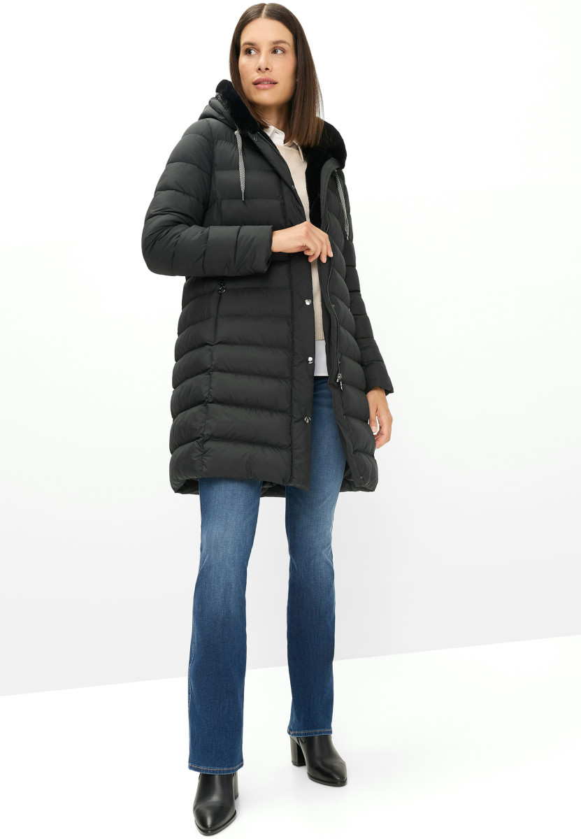 Dieser gefütterte Steppmantel verfügt über eine hochwertige Wattierung (vermutlich Daunen oder eine leistungsstarke Kunstfaser), die auch bei tiefen Temperaturen zuverlässig warm hält. Das sanfte, horizontale Stepp-Design sorgt für eine feminine Silhouette, ohne aufzutragend zu wirken.