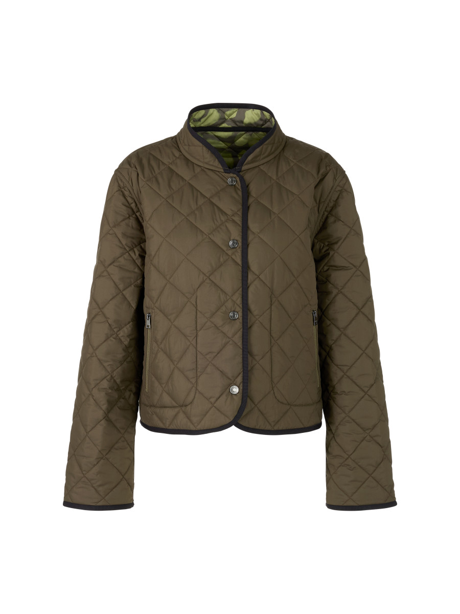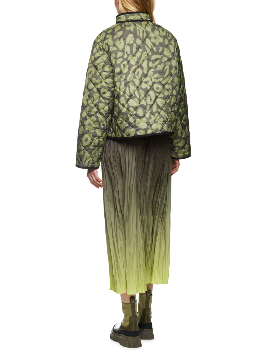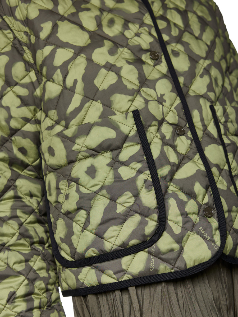 Gesteppte Wendejacke „Rethink Together“ | Diese coole, leicht wattierte Steppjacke ist wendbar und lässt sich von beiden Seiten tragen. Eine Seite präsentiert sich im Leo-Print mit aufgesetzten Taschen, während die andere Seite einfarbig mit vertikaler Reißverschluss-Tasche kommt. Zudem hat die Jacke eine gerade, verkürzte Passform mit einem kleinen Stehkragen. Das Modell trägt das Nachhaltigkeitslabel „Rethink Together“, da es aus 100 % recyceltem Polyester besteht.