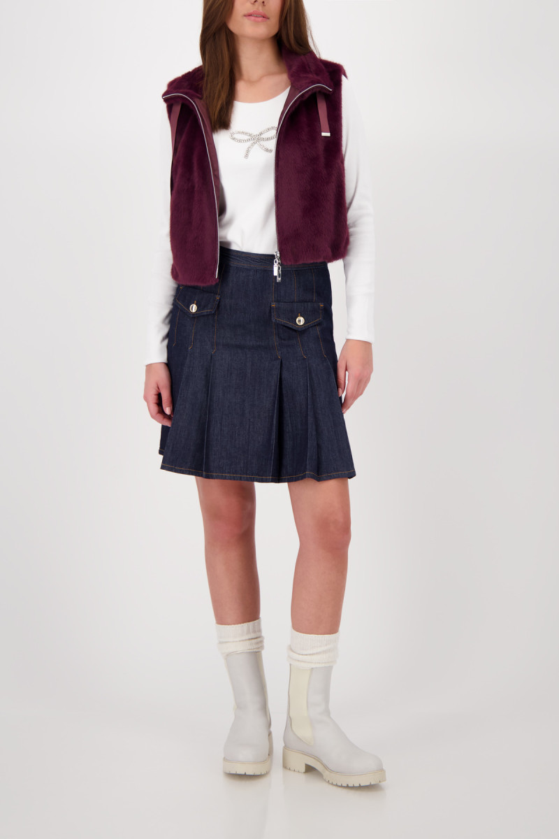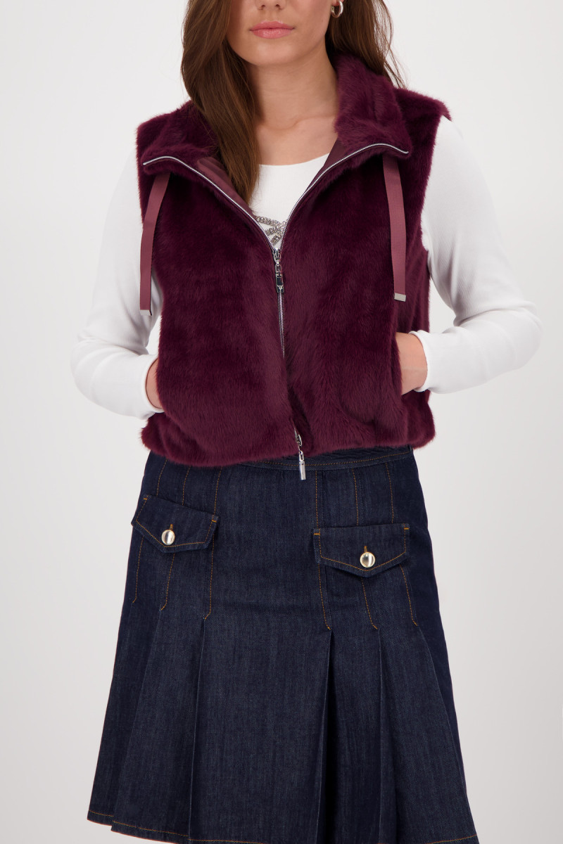Luxuriöse Fake Fur Weste mit flauschiger Haptik, Stehkragen, Seitentaschen und einem praktischem 2-Wege Reißverschluss. Perfekt für stilvolle Auftritte.