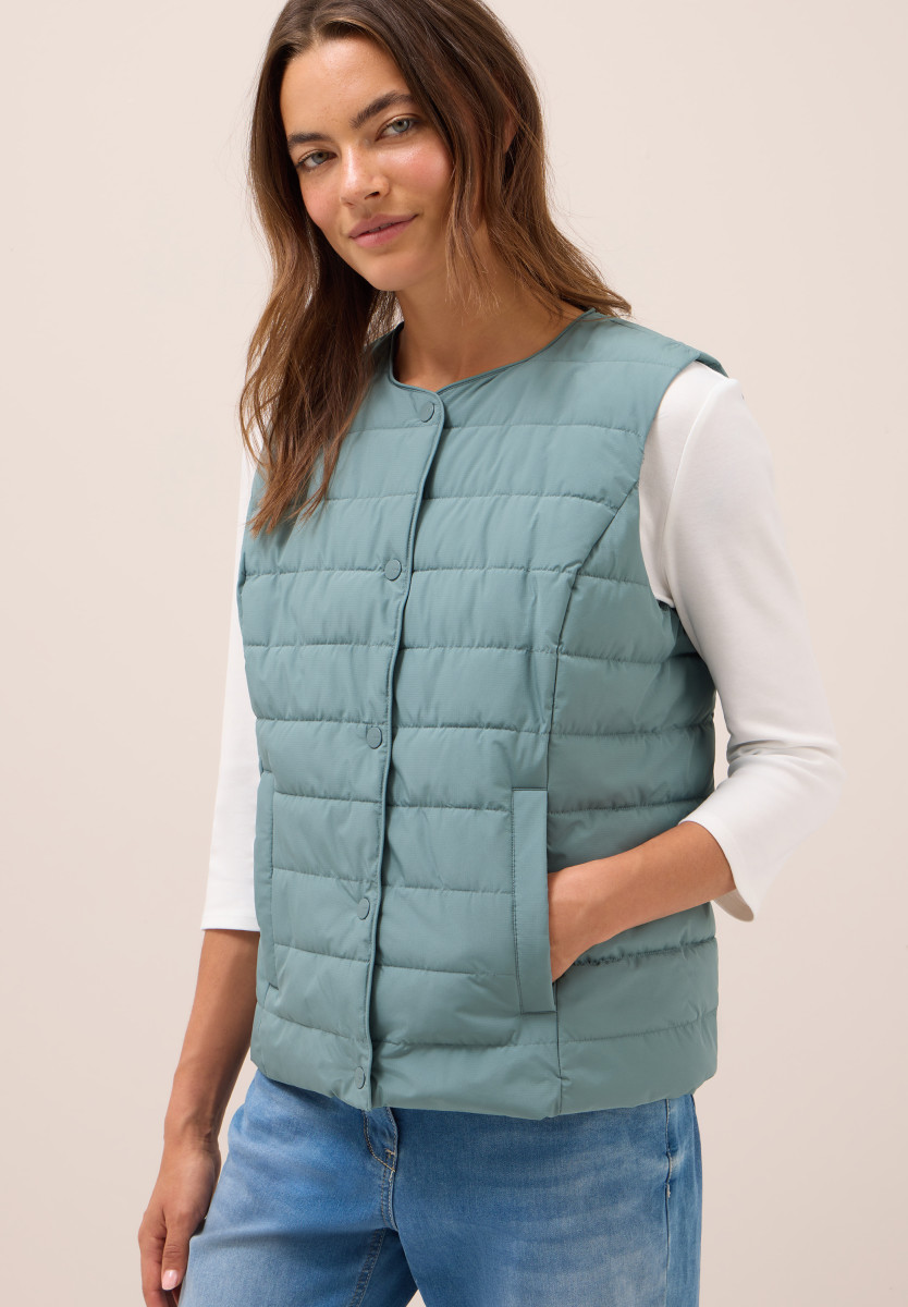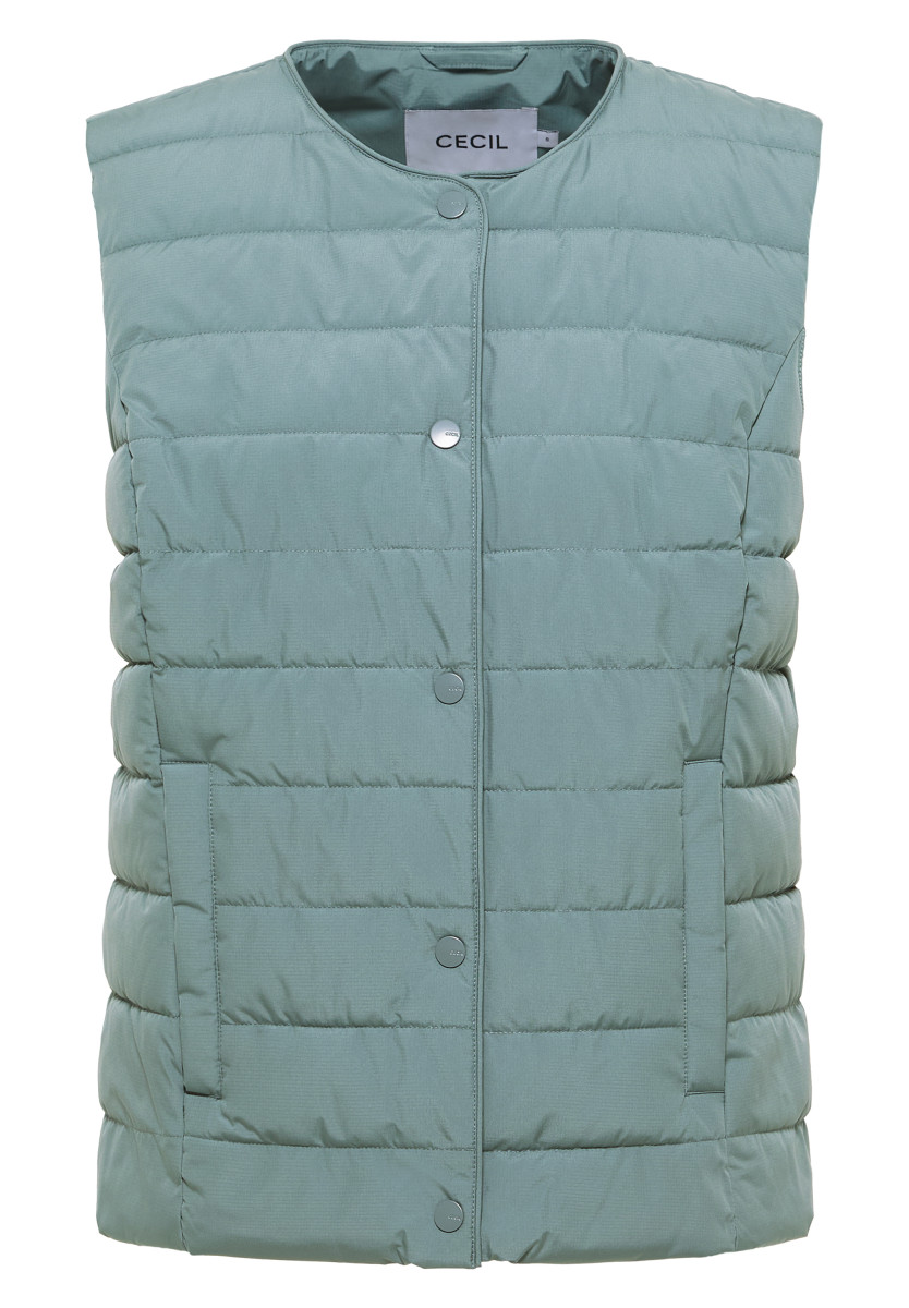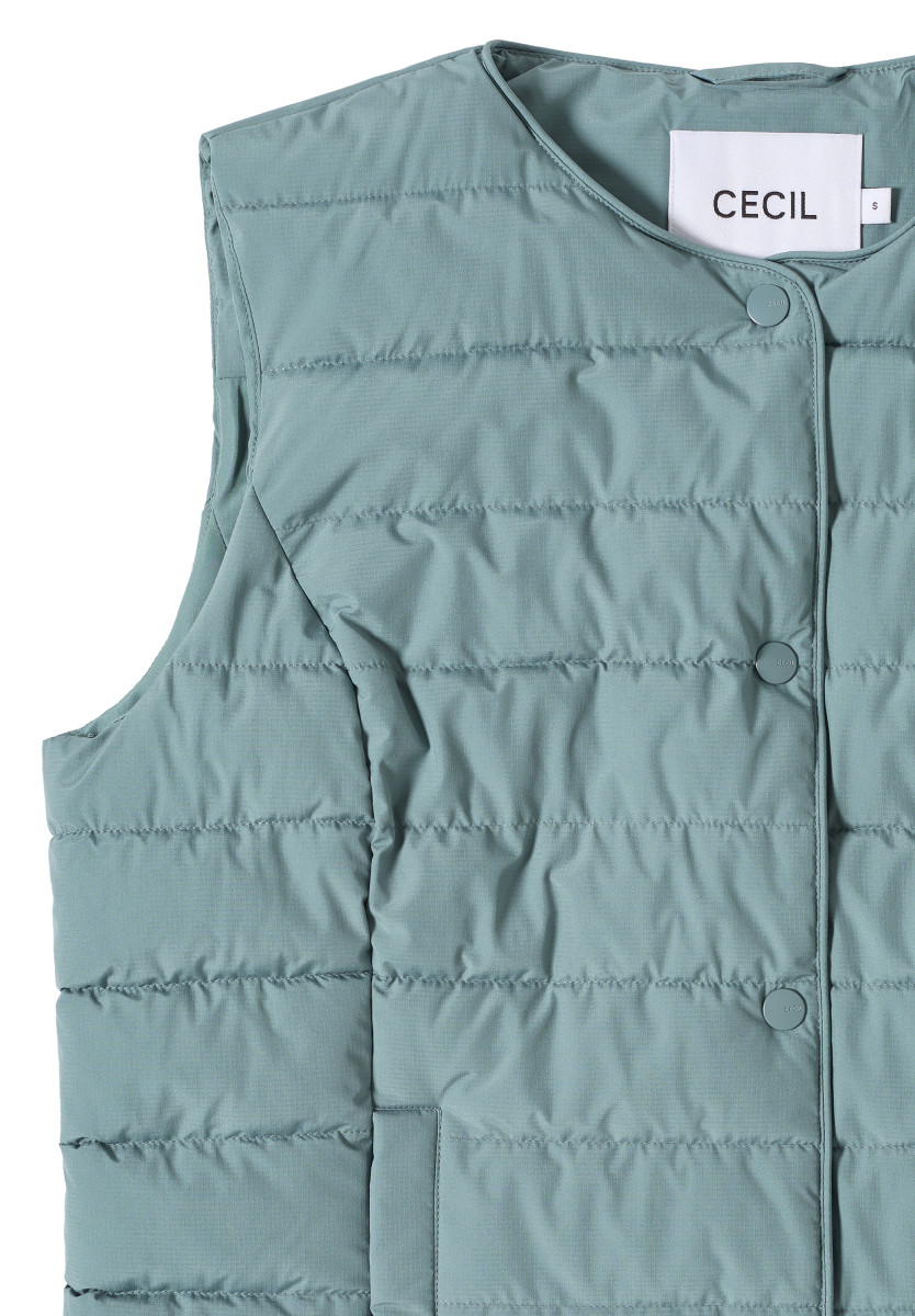 Diese gesteppte Weste von CECIL für Damen ist die ideale Wahl zum drunterziehen, wenn es abends kühler wird oder für ungemütliche Herbsttage. Sie ist perfekt fürs Layering unter Jacken und Mänteln geeignet und sorgt für ein warmes und gemütliches Tragegefühl. Tonale Details, seitliche Taschen und ein Druckknopf zur Ausschnittanpassung machen sie besonders praktisch. Leicht gesteppte Weste für Layeringlooks Seitliche Taschen Tonale Details Drockknopf innen zur Ausschnittanpassung Ideal zum Unterziehen für Jacken und Mäntel Material: Obermaterial: 100% Polyester; Futter: 100% Polyester; Füllung: 100% Polyester
