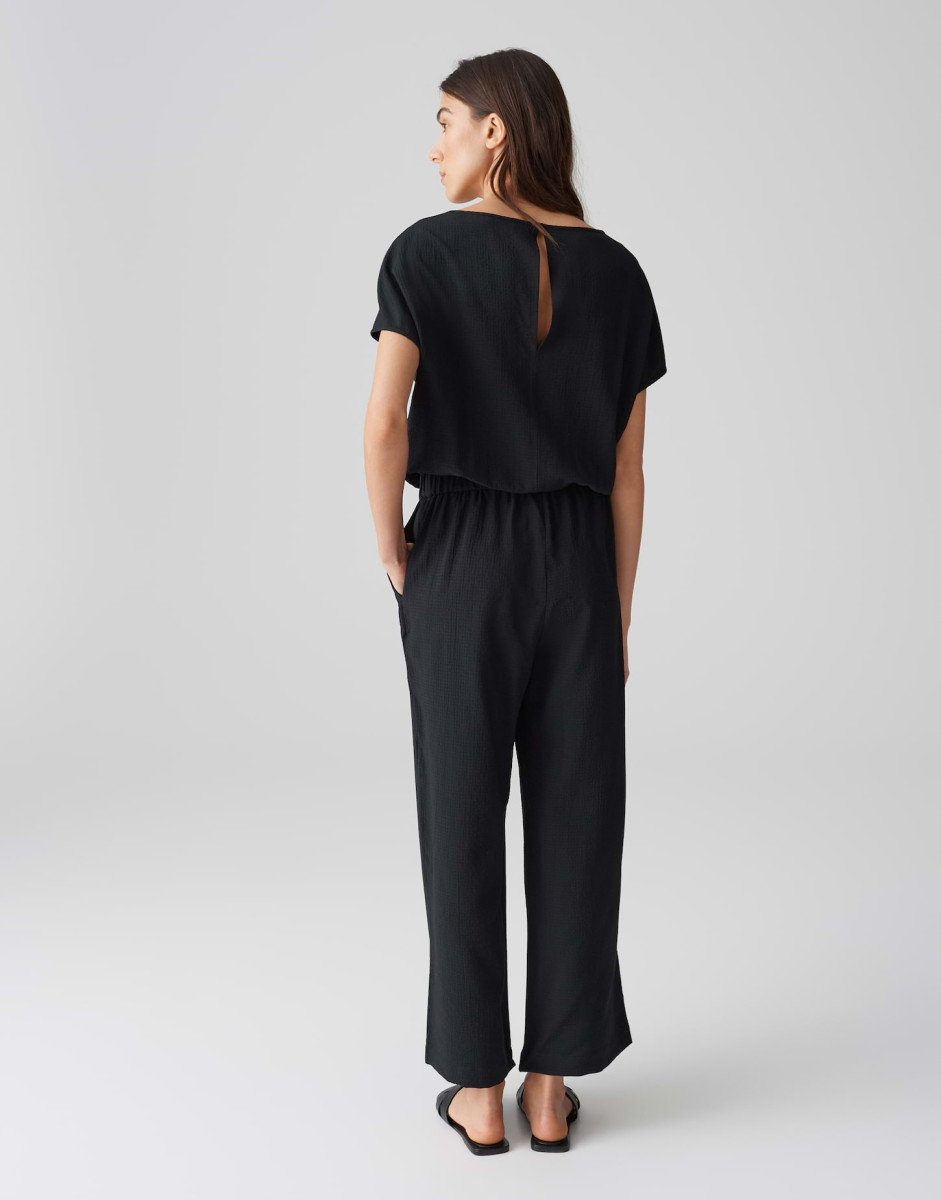 Die feine Seersucker-Struktur verleiht dem Jumpsuit eine spannende Textur. Der elastische Tunnelzug mit Kordel betont die Taille und lässt sich individuell anpassen, für eine schmeichelnde Silhouette und maximalen Tragekomfort.