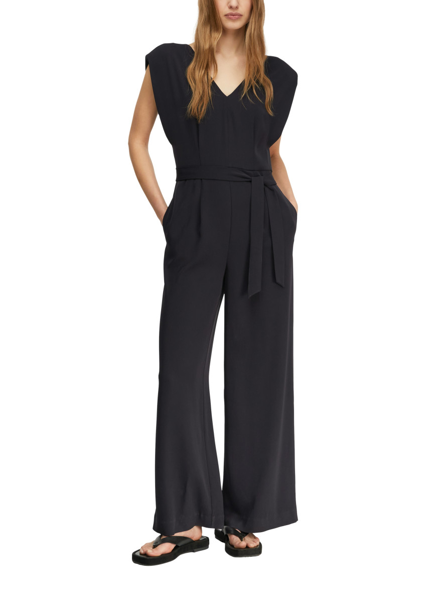 Dieser elegante Jumpsuit mit Wide Leg vereint feminine Raffinesse und lässigen Komfort. Der schmeichelhafte V-Ausschnitt und die entspannte Relaxed Fit-Passform sorgen für eine moderne Silhouette. Praktische Eingrifftaschen bieten funktionalen Mehrwert, während der Bindegürtel Ihre Taille betont. Ob festliche Anlässe, Partys oder entspannte Urlaubstage – Sie stylen diesen ärmellosen Overall mühelos von Tag zu Nacht. Mit flachen Sandalen casual oder High Heels elegant kombinieren.Lief.-Art-Nr: 2179746