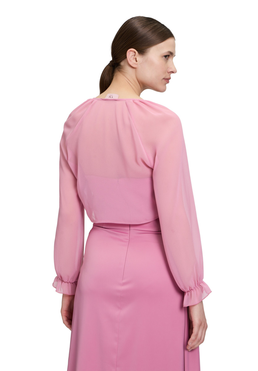 Diese lässig geschnittene Bluse aus leichter Chiffon-Qualität überzeugt mit ihrem unkomplizierten Stil und hohem Tragekomfort. Mit einer Gesamtlänge von 40 cm fällt sie kurz und modern. Die Raglanärmel verleihen dem Design eine sportlich-legere Note, während der Verzicht auf einen Verschluss die fließende Silhouette unterstreicht. Das unifarbene Design macht die Bluse zu einem vielseitig kombinierbaren Begleiter für Alltag und Freizeit.