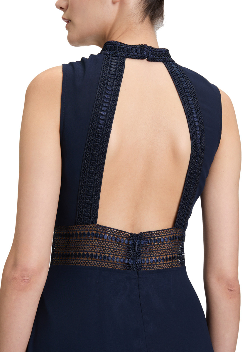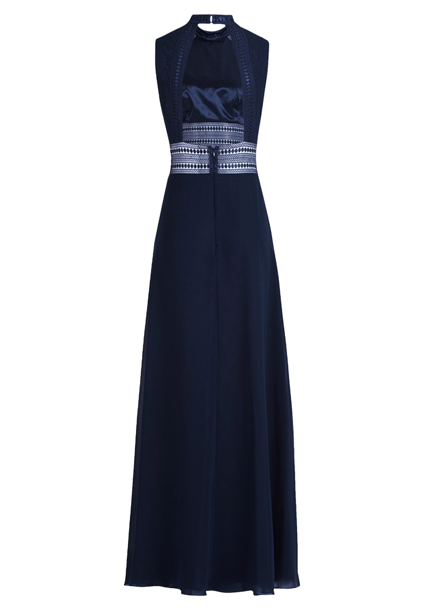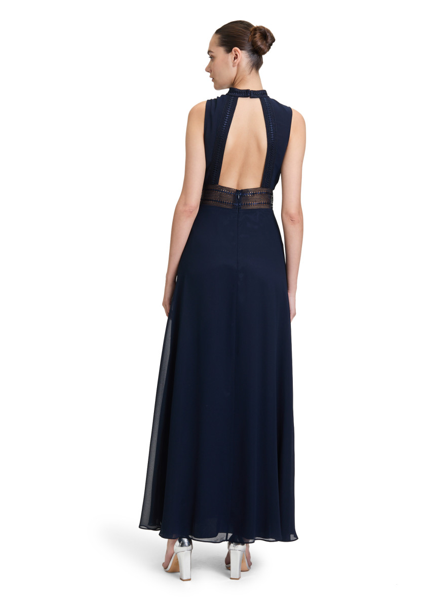 * Passform: Schwingend * Gesamtlänge: 157 cm * Länge ab Taille: 115 cm * Feinmaterial: Chiffon * Ärmel: Ärmellos * Ausschnitt: Raffung/Kräuselung * Kragen: Stehkragen * Längeninfo: Maxi * Verschluss: Haken und Ösen, Reißverschluss * Muster: Uni * Futter: 100% Polyester