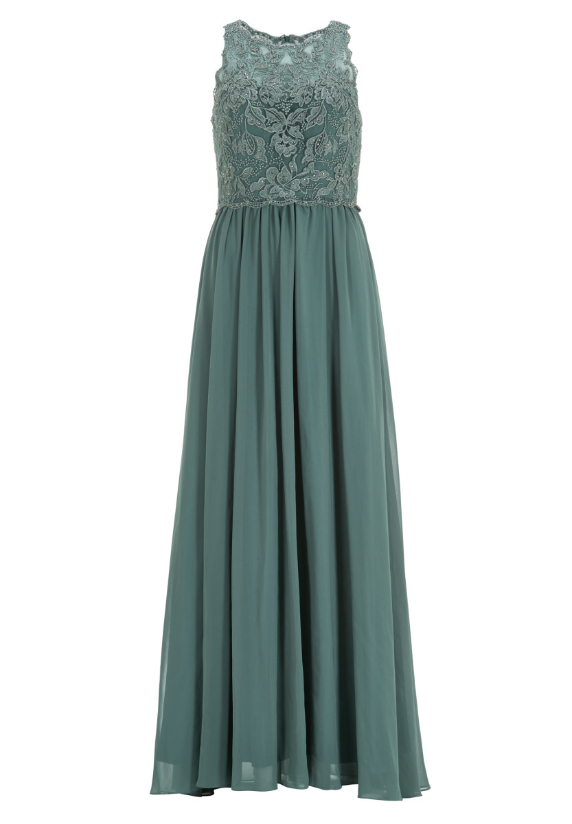 Special Moment! Dieses elegante Abendkleid versprüht feminine Eleganz. Das transparente High-Closed Oberteil mit Blumenspitze gibt dem Look einen romantischen Touch, während die tonalen Glitzersteine das Oberteil zum funkleln bringen. Das Oberteil rundet eine Spitzenbogenkante ab und mündet in einem fließenden Chiffonrock.