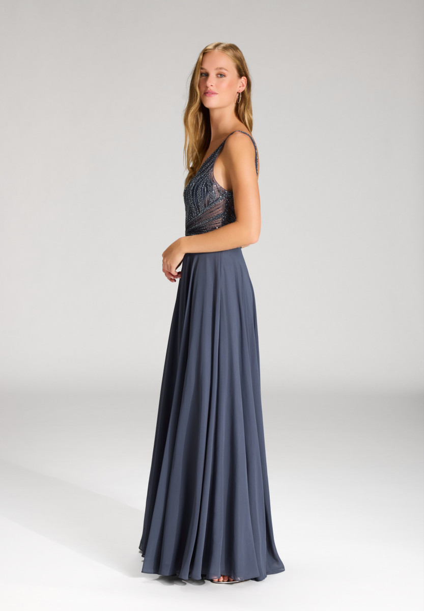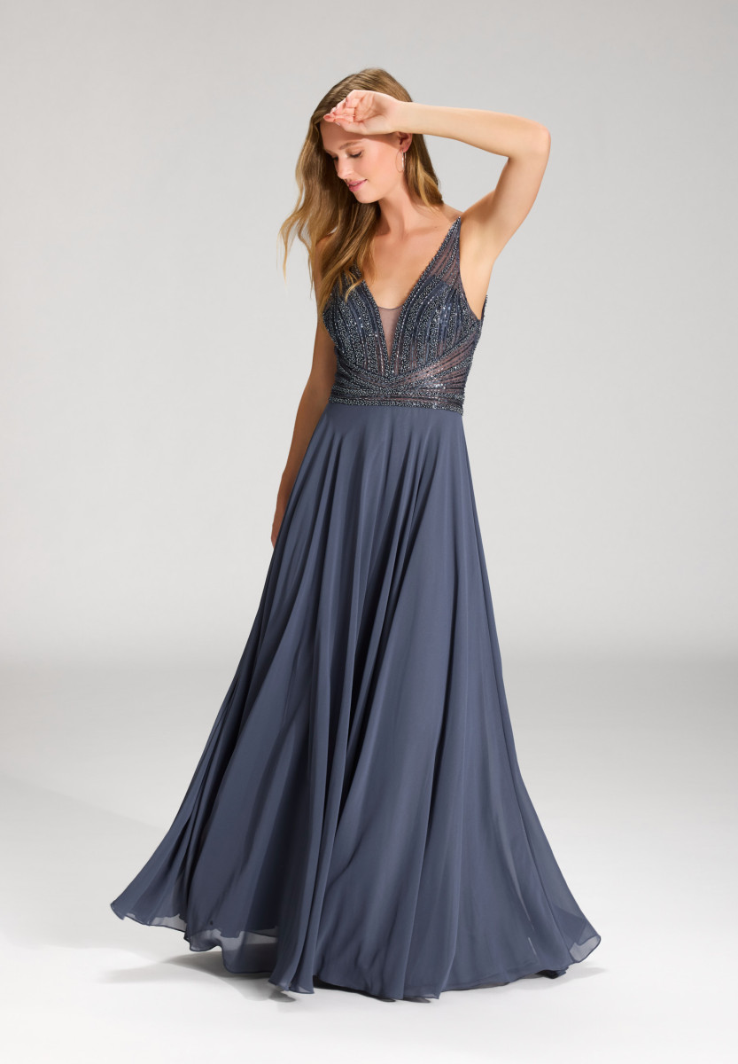 Unser langes Chiffon-Abendkleid mit Stickerei ist die perfekte Wahl, um deine Schönheit und Eleganz zur Geltung zu bringen.