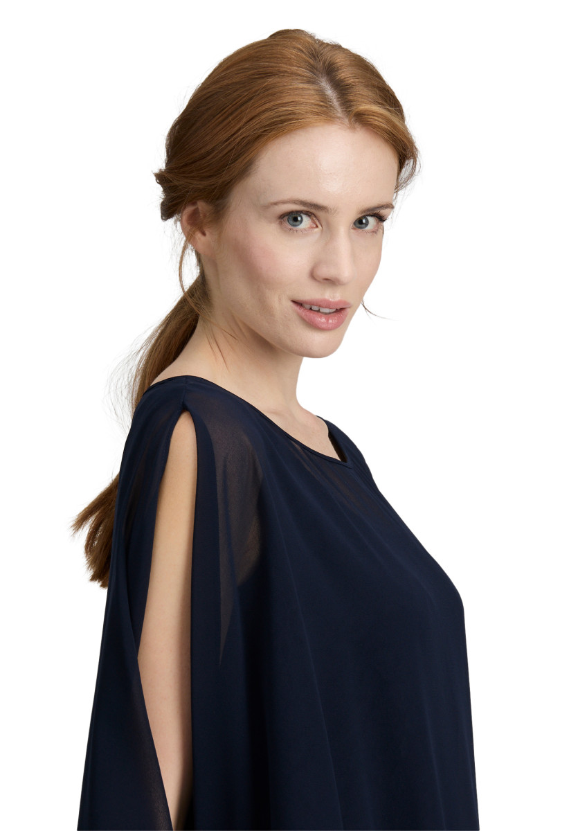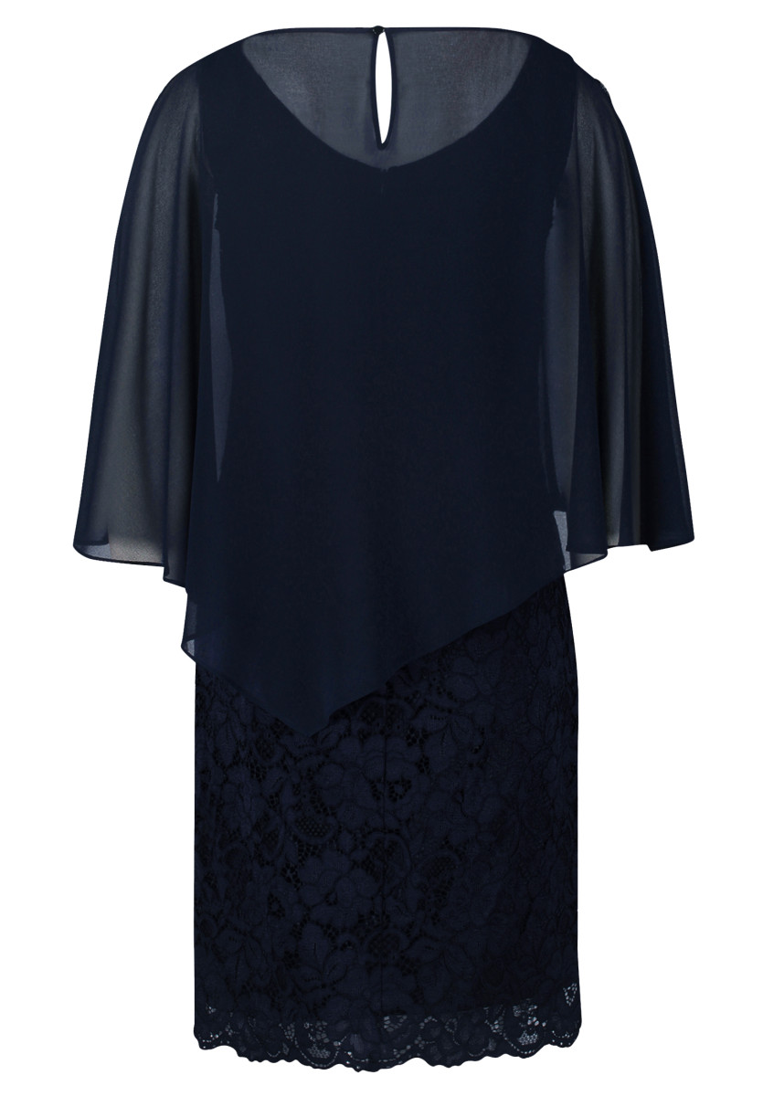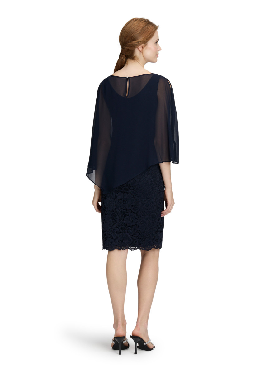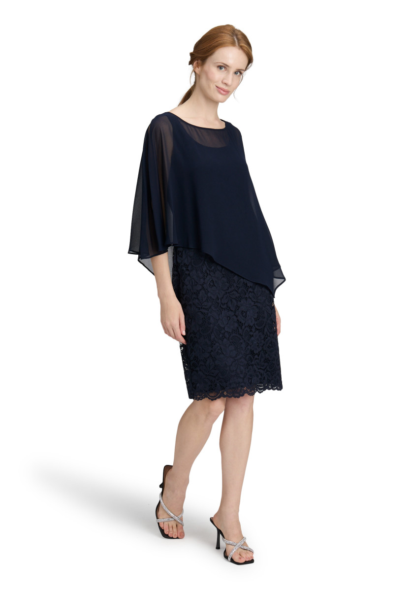 * Passform: Figurumspielend * Gesamtlänge: 100 cm * Länge ab Taille: 58 cm * Feinmaterial: Materialmix, Spitze, Chiffon * Ärmel: Halbarm * Ausschnitt: Rundhalsausschnitt * Längeninfo: Knieumspielend * Verschluss: Reißverschluss * Muster: Uni * Futter: 100% Polyester * Besatz: 100% Polyester