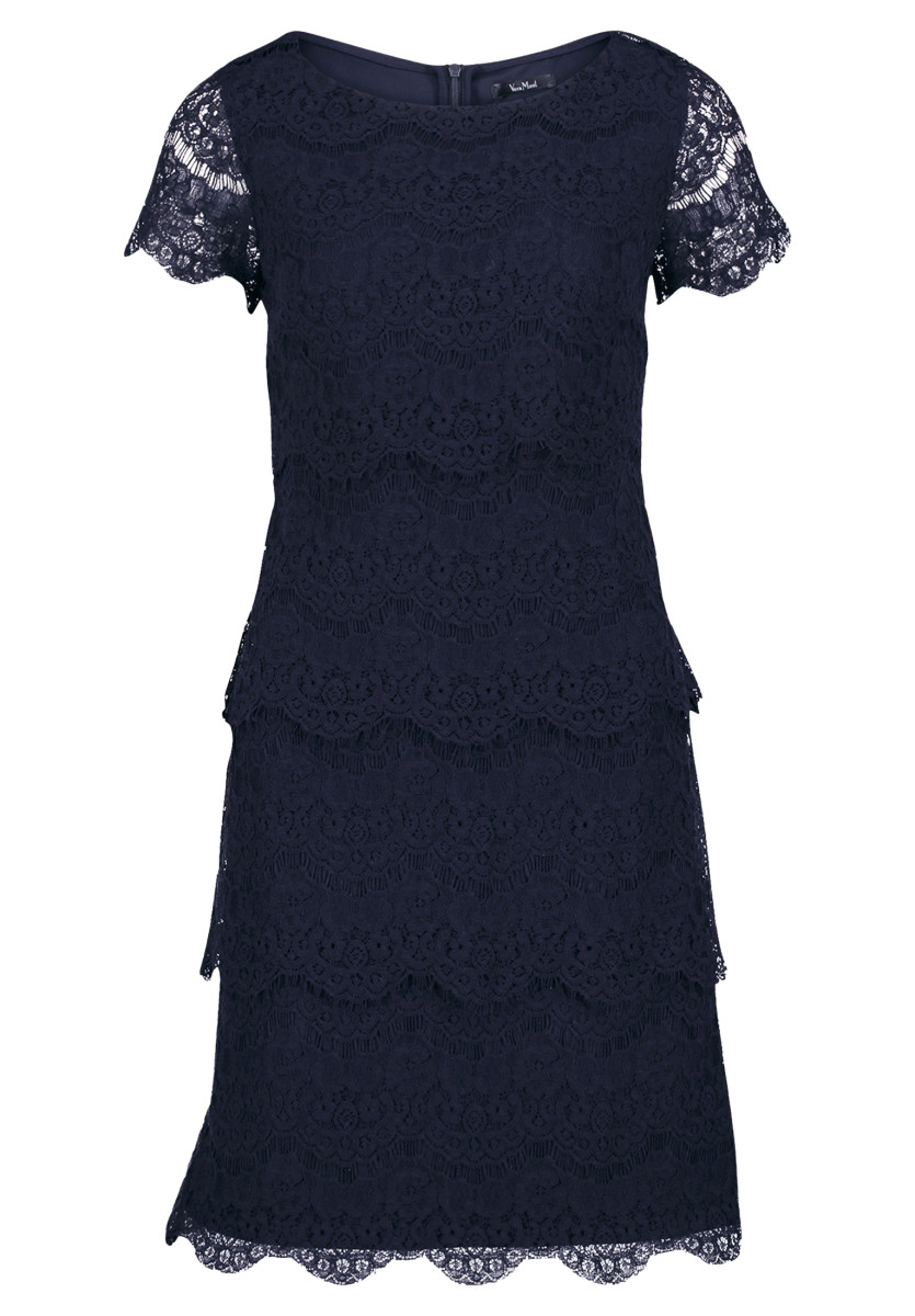 Vera Mont Damen Spitzenkleid | Rundhalsausschnitt | semitransparente, kurze Ärmel aus Spitze | Kleid mit Allover-Spitze in Layering-Optik | knieumspielend | sehr feminine Optik | Gesamtlänge: 98 cm * Länge ab Taille: 56 cm